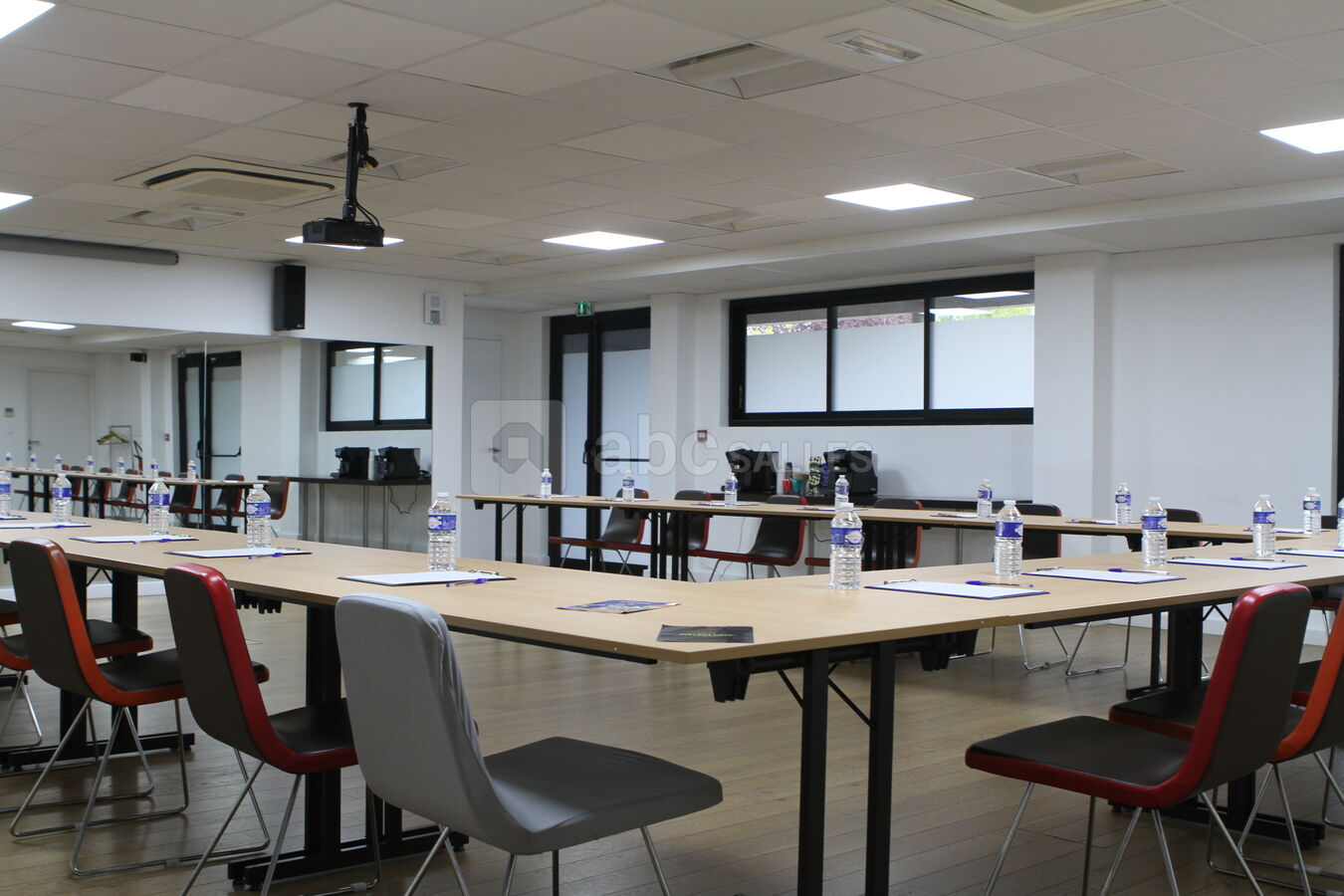 Cette salle de séminaire mesurant plus de 100 m², pouvant accueillir 40 personnes en disposition U, et 60 en théâtre. Cette salle est entièrement équipée, machine à café Nespresso, thé, paperboard, vidéo-projecteur, stylos...