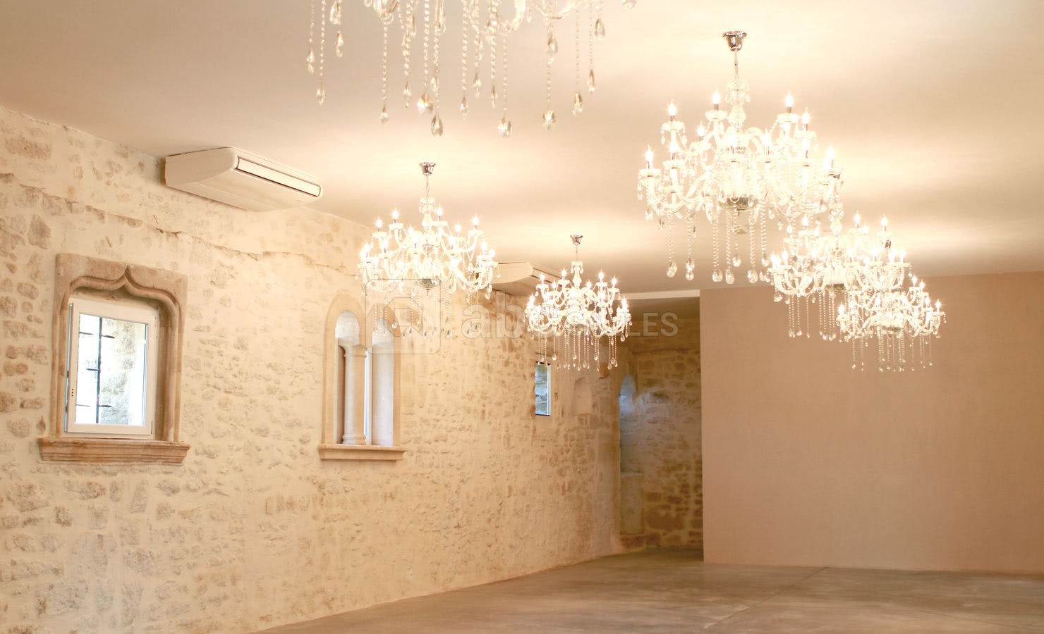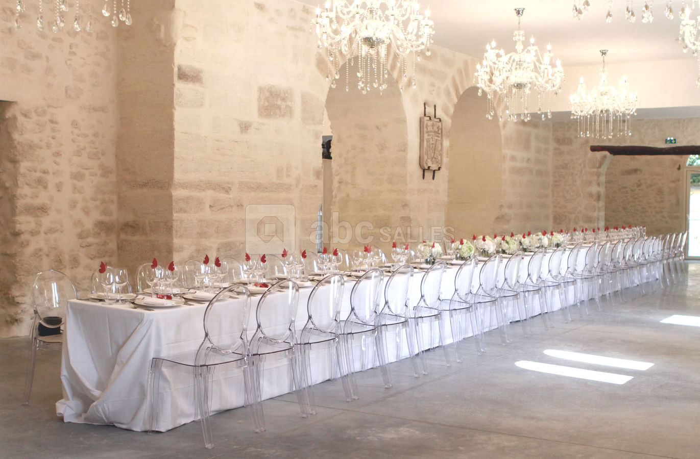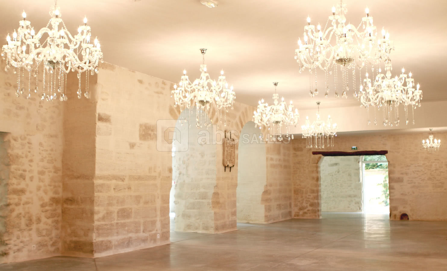 L'Abbaye Du Grand Gigognan vous offre un cadre idyllique pour votre réception. Profitez d'un extérieur sublime avec un jardin à la végétation florissante de pins parasols, de cyprès, d'olivier et de lavandes. Vous trouverez aussi une piscine de 10M*5M. Ce lieu est idéal pour votre cocktail apéritif ou pour l'organisation de jeux. L'abbaye dispose de pièces luxueuses pour accueillir vos convives. La grande salle voutée fraiche en été est parfaite pour le repas. La salle des écuries à l'architecture authentique est typique de notre région de Provence. Elle peut être le lieu privilégié de vos enfants ou bien une salle de danse ou encore être transformée en bar lounge.