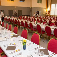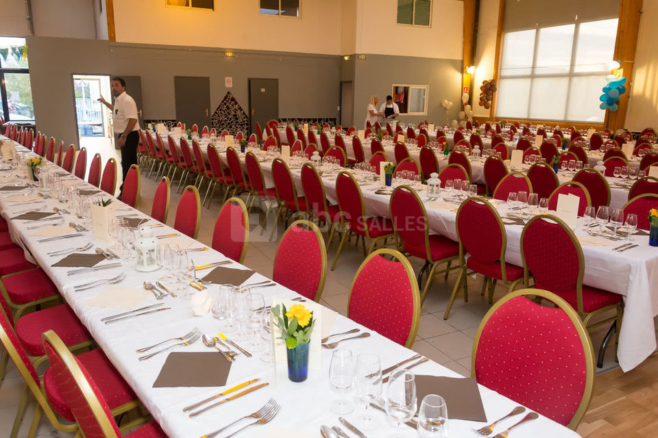 Salle de réception de 550 m² pouvant contenir 500pers en version cocktail dinatoire et 250pers en repas assis. Une piste de danse en parquet de 150mmm² ainsi qu'une scène de 35m² et ses 2 loges.