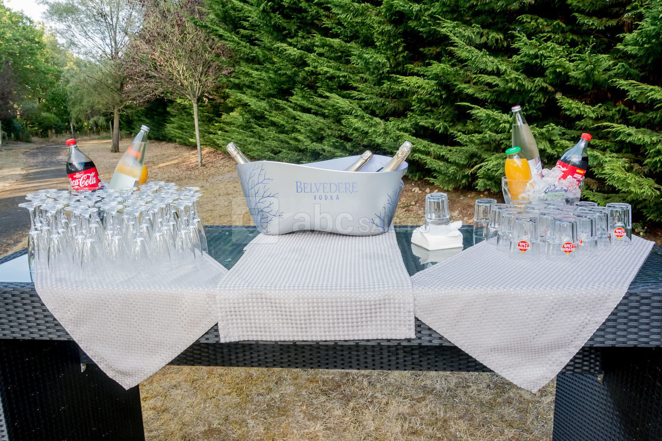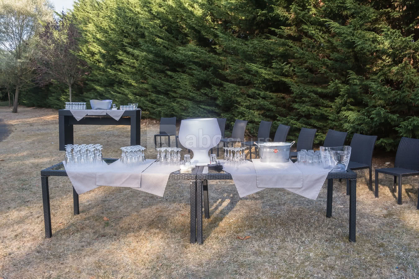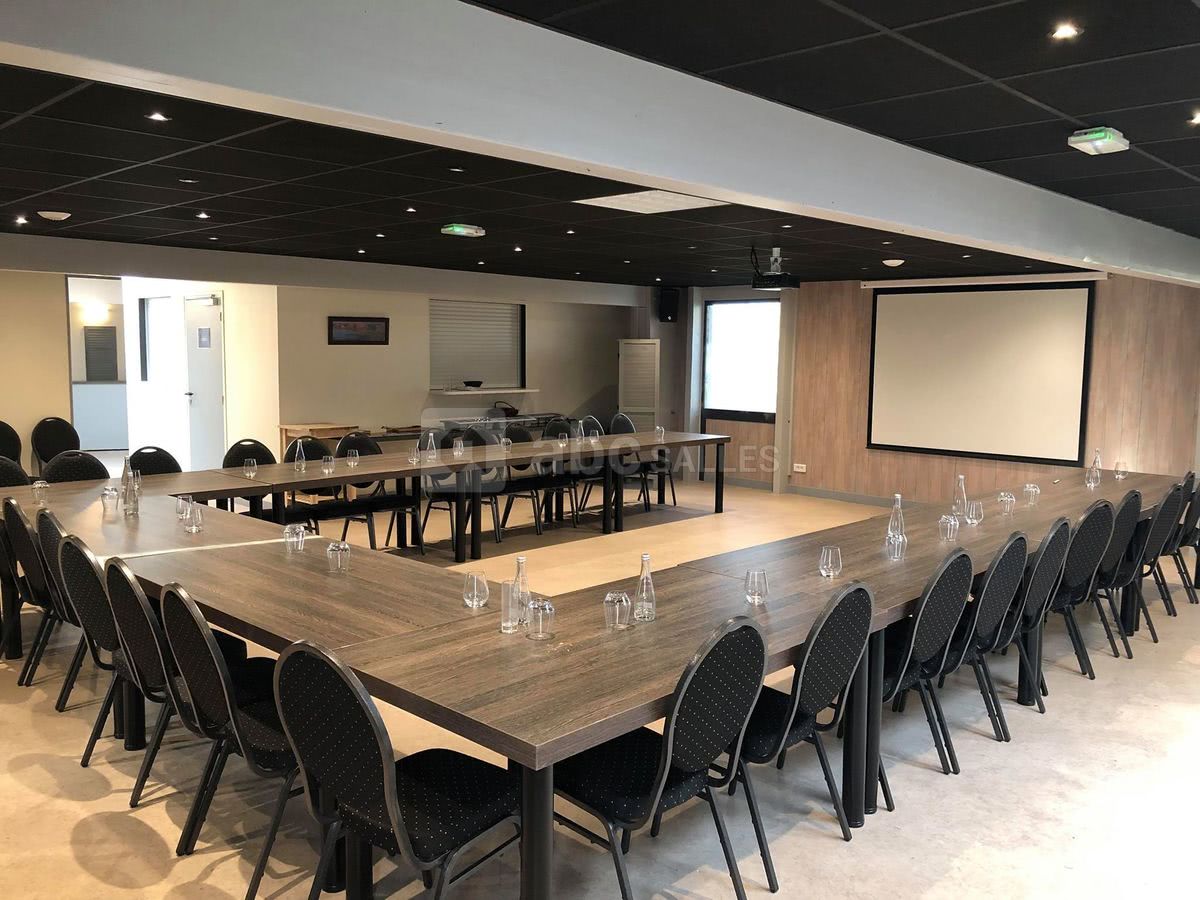 Un espace traiteur est mis à disposition avec table de travail, meuble chauffant, réfrigérateur, machine à glaçons, évier.. le service traiteur peut aussi être assuré par le restaurant voisin.