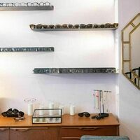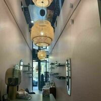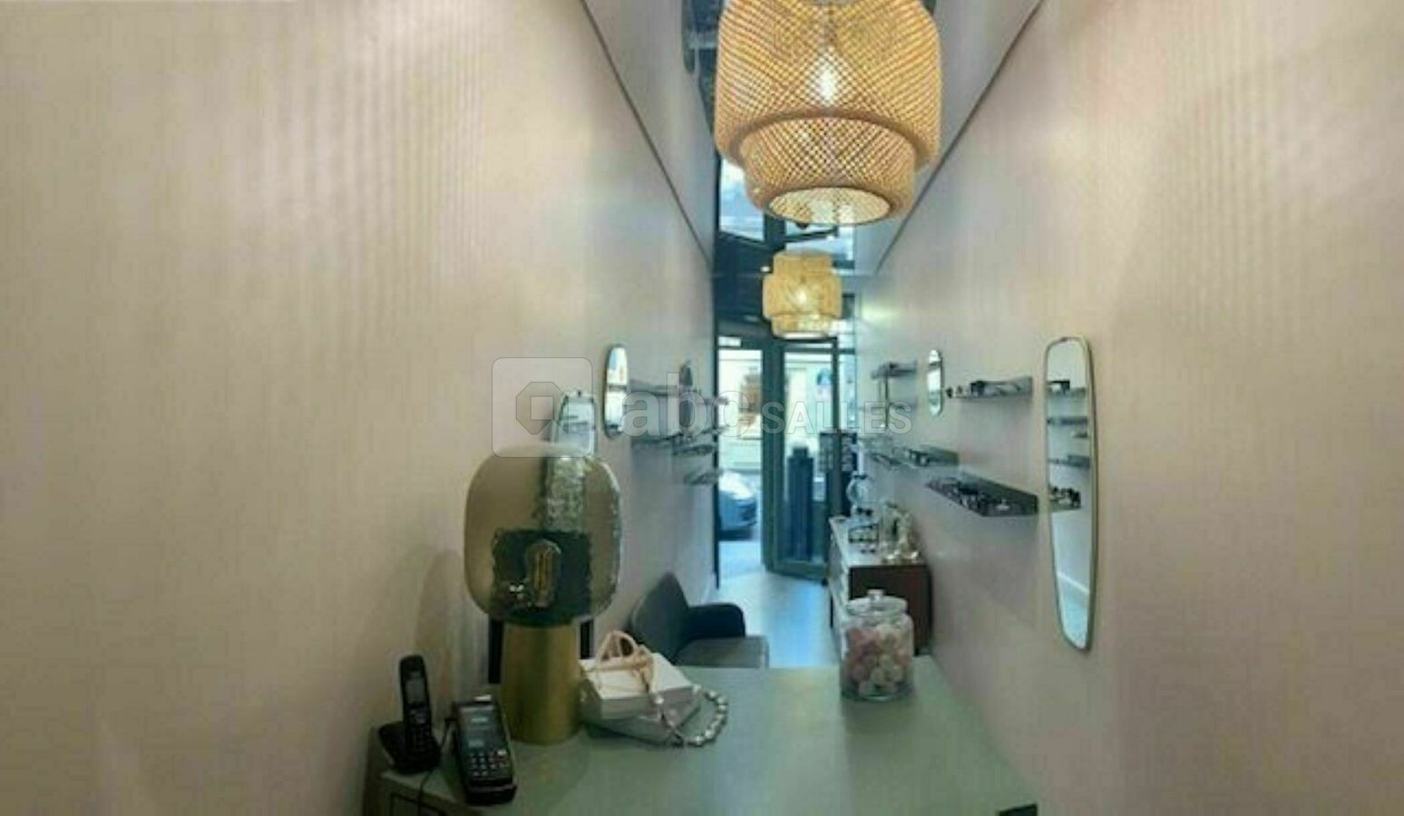 Le local est haut de plafond avec un miroir réflectif métallique.