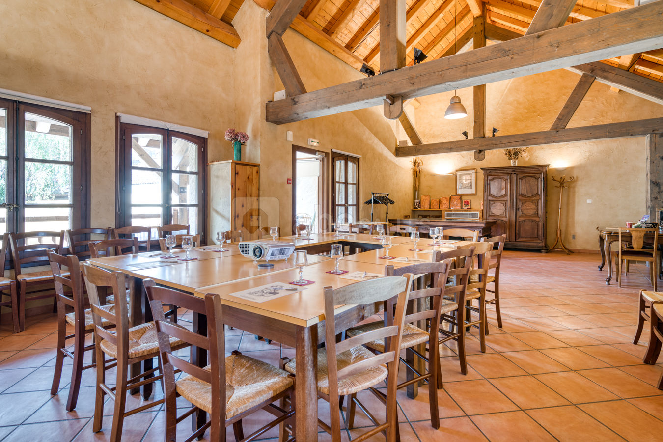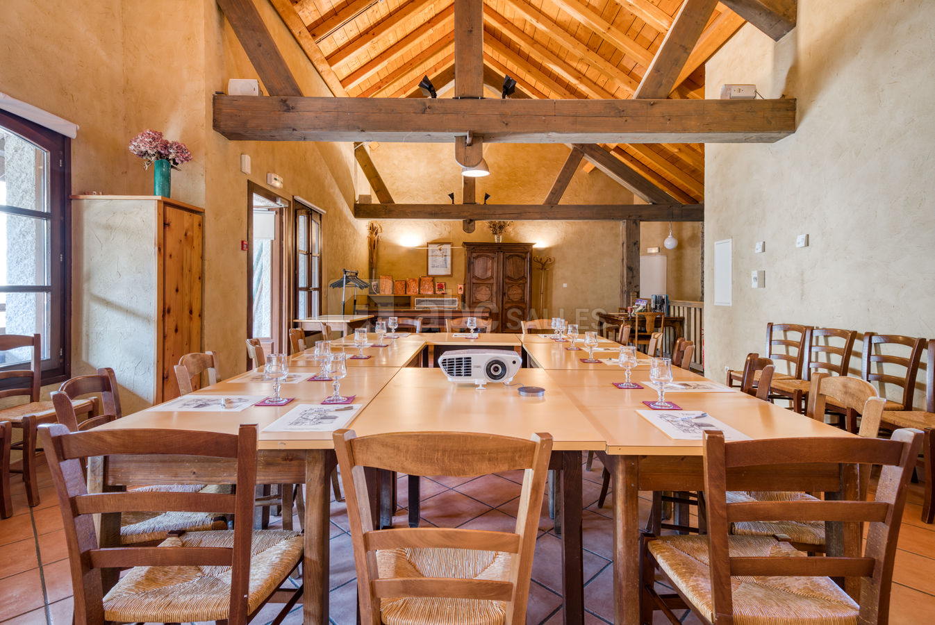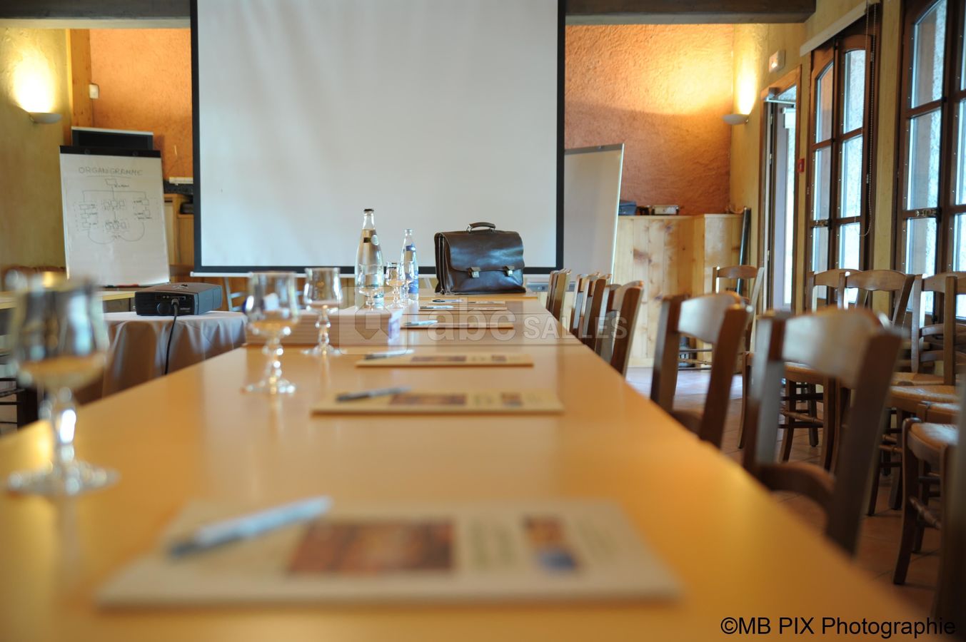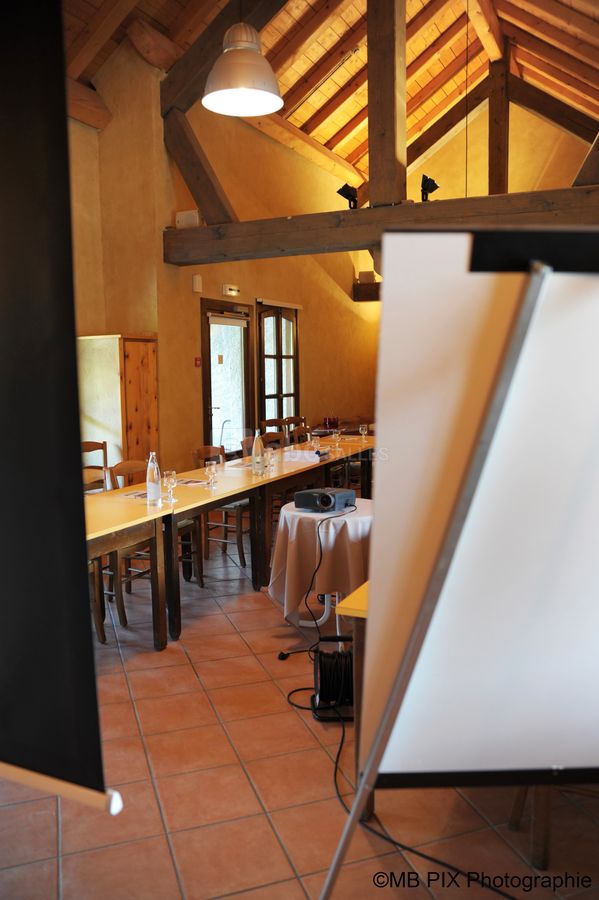 Notre salle de séminaire bénéficie d'une vue sur le jardin ainsi que sur sa fontaine. Cette vue vous invitera à faire une balade au bord du Lac ou encore une activité Team-Building.