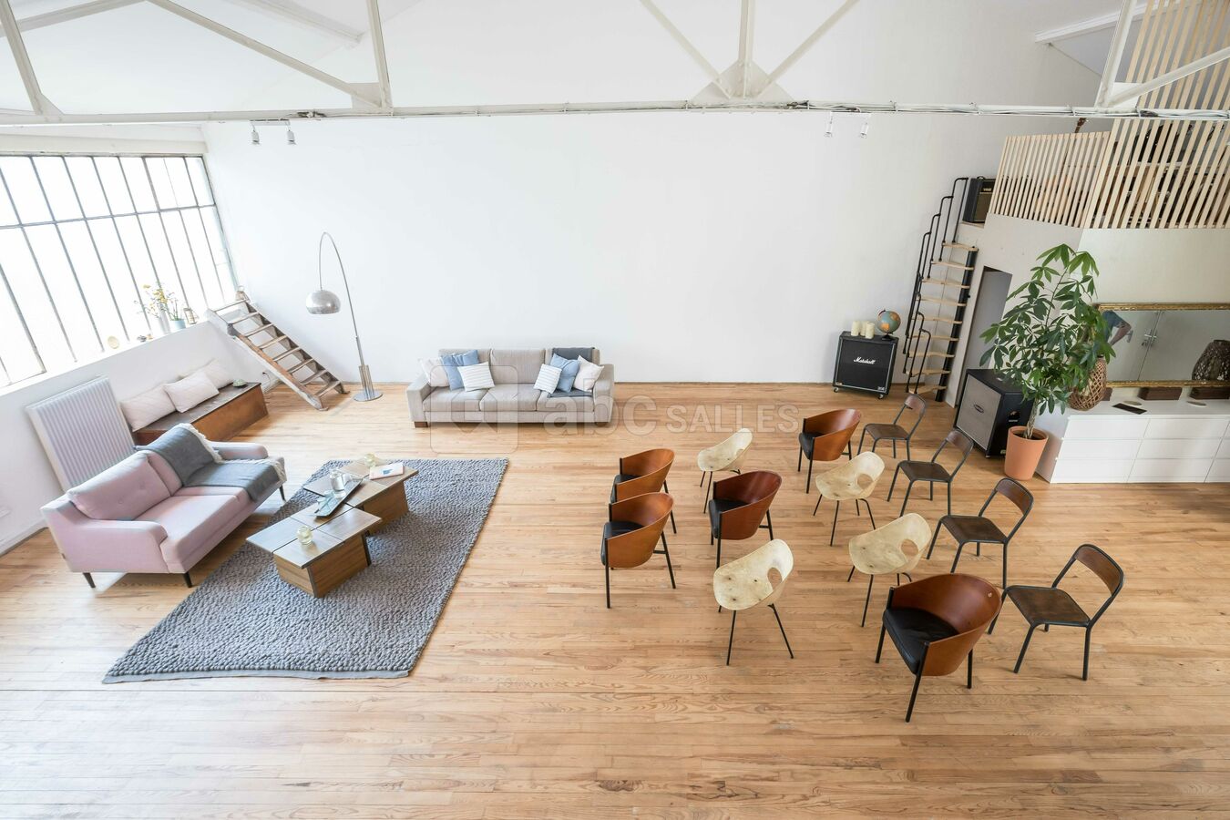 Lumineux, calme et modulable, avec une surface de 200 m2 au sol et une hauteur sous plafond de 6,70 m, le Loft d’Audrey a tous les atouts pour faire de votre événement une réussite.