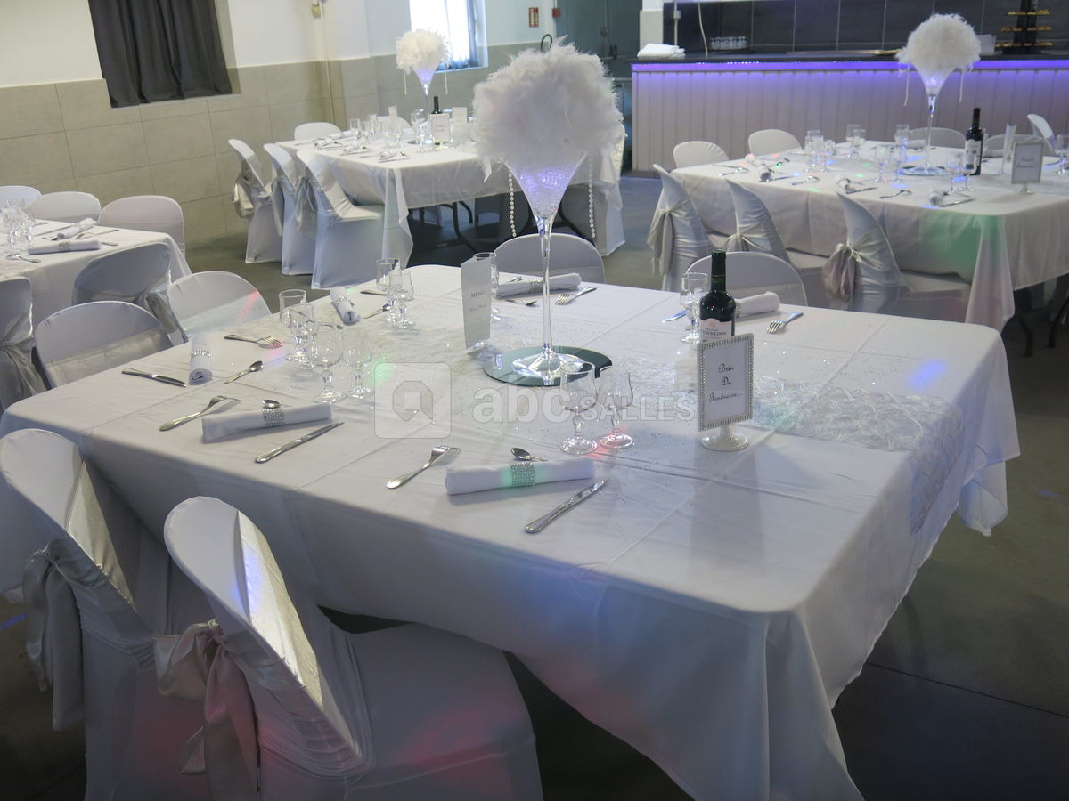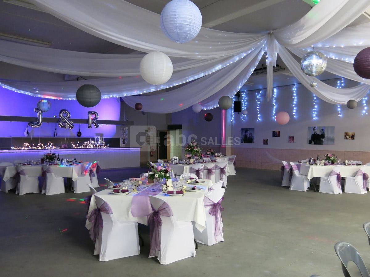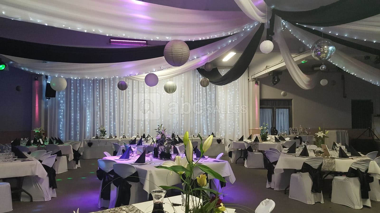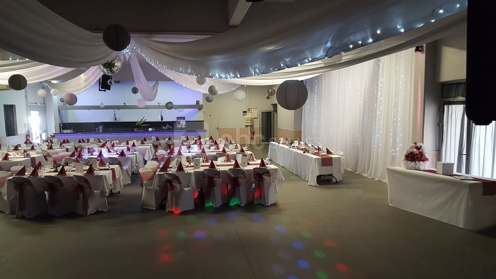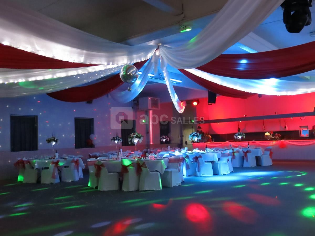 Nous disposons sur place d'un vestiaire, bar, frigot machine à glaçons. Nous avons également du matériel sur demande : sonorisation et éclairage pour dîner dansant, piste de danse, décoration, micros de table et de salle. Cuisine équipée pour traiteur.
