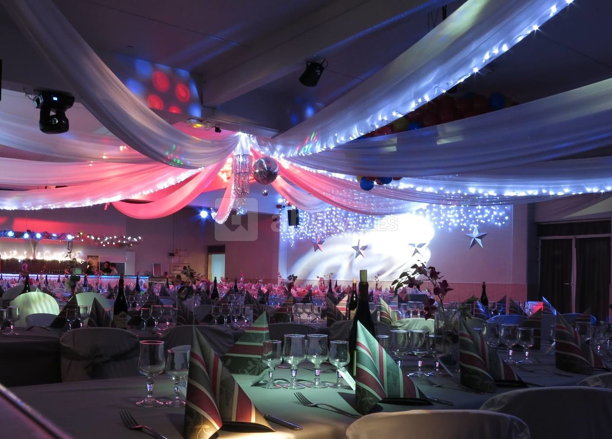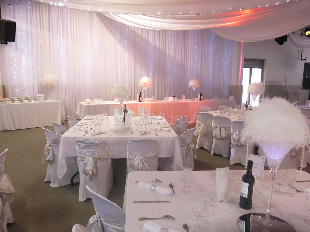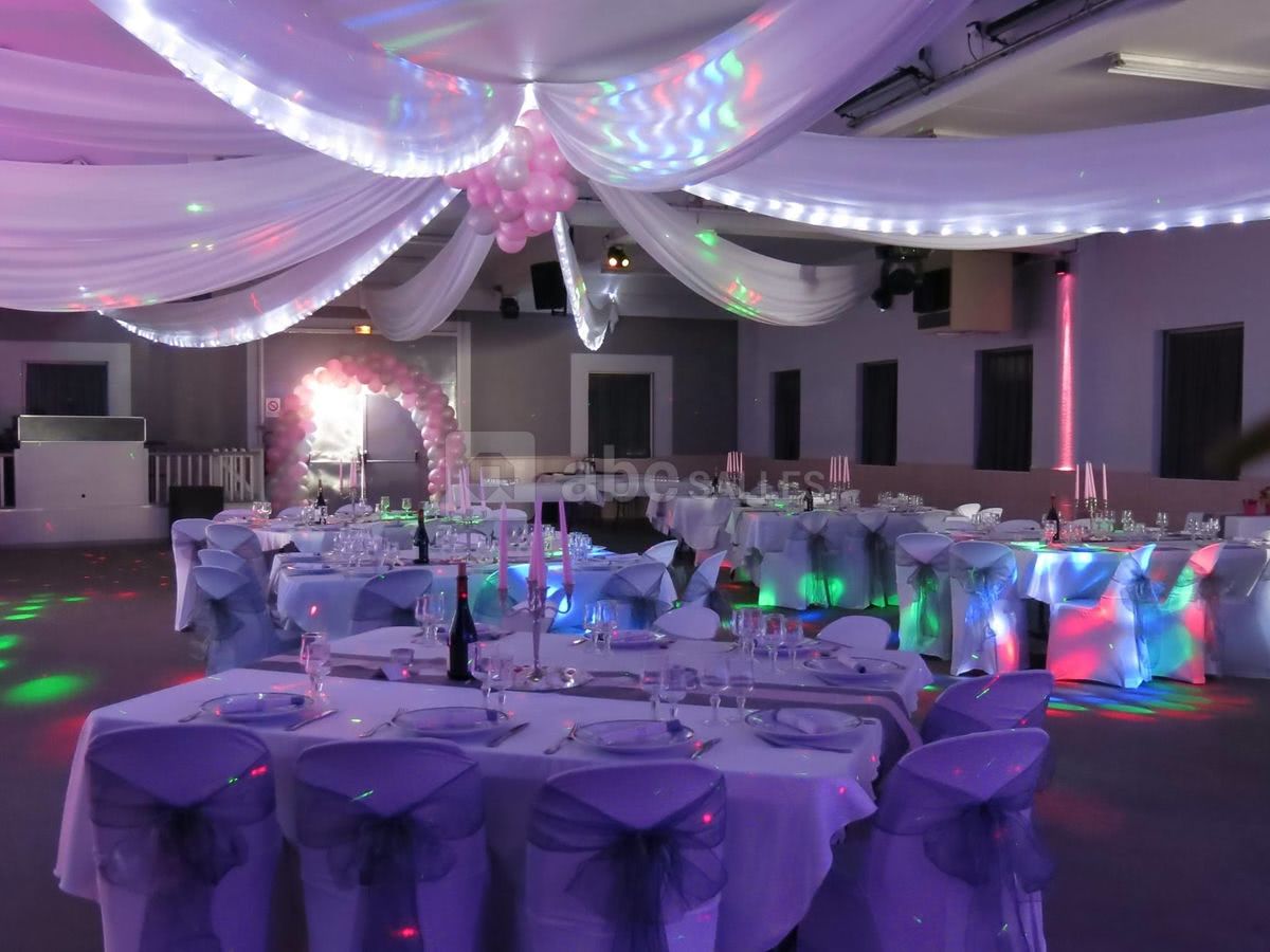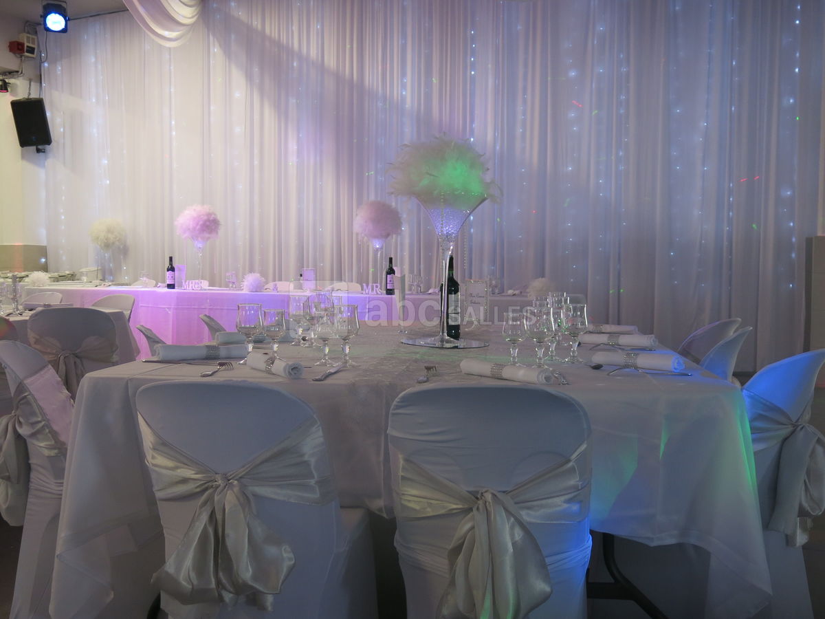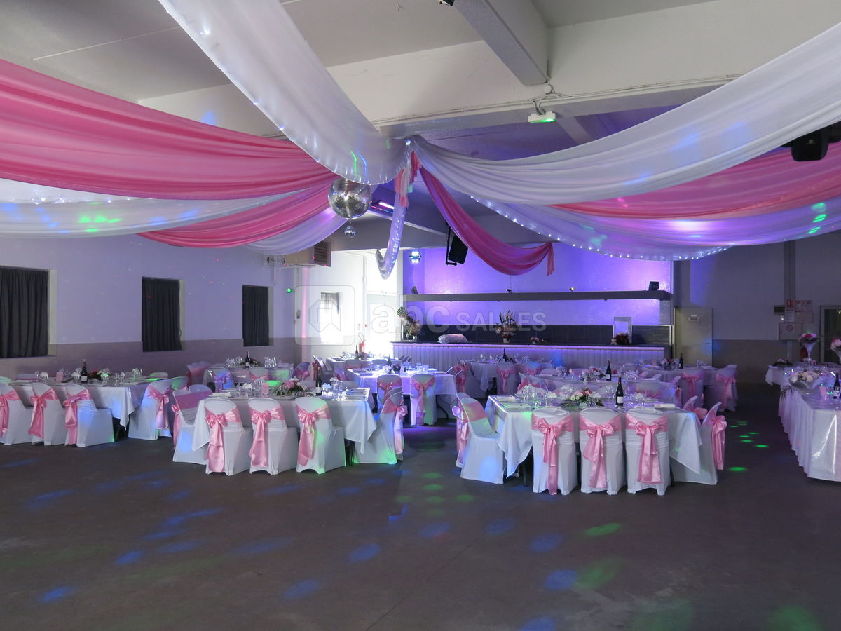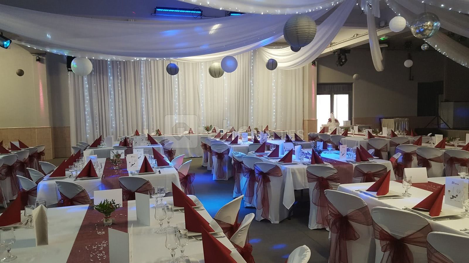 Nous disposons sur place d'un vestiaire, bar, frigot machine à glaçons. Nous avons également du matériel sur demande : sonorisation et éclairage pour dîner dansant, piste de danse, décoration, micros de table et de salle. Cuisine équipée pour traiteur.