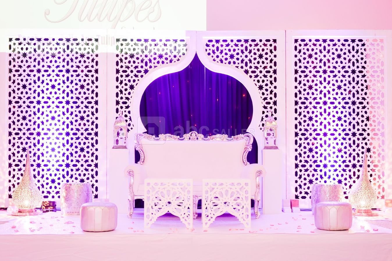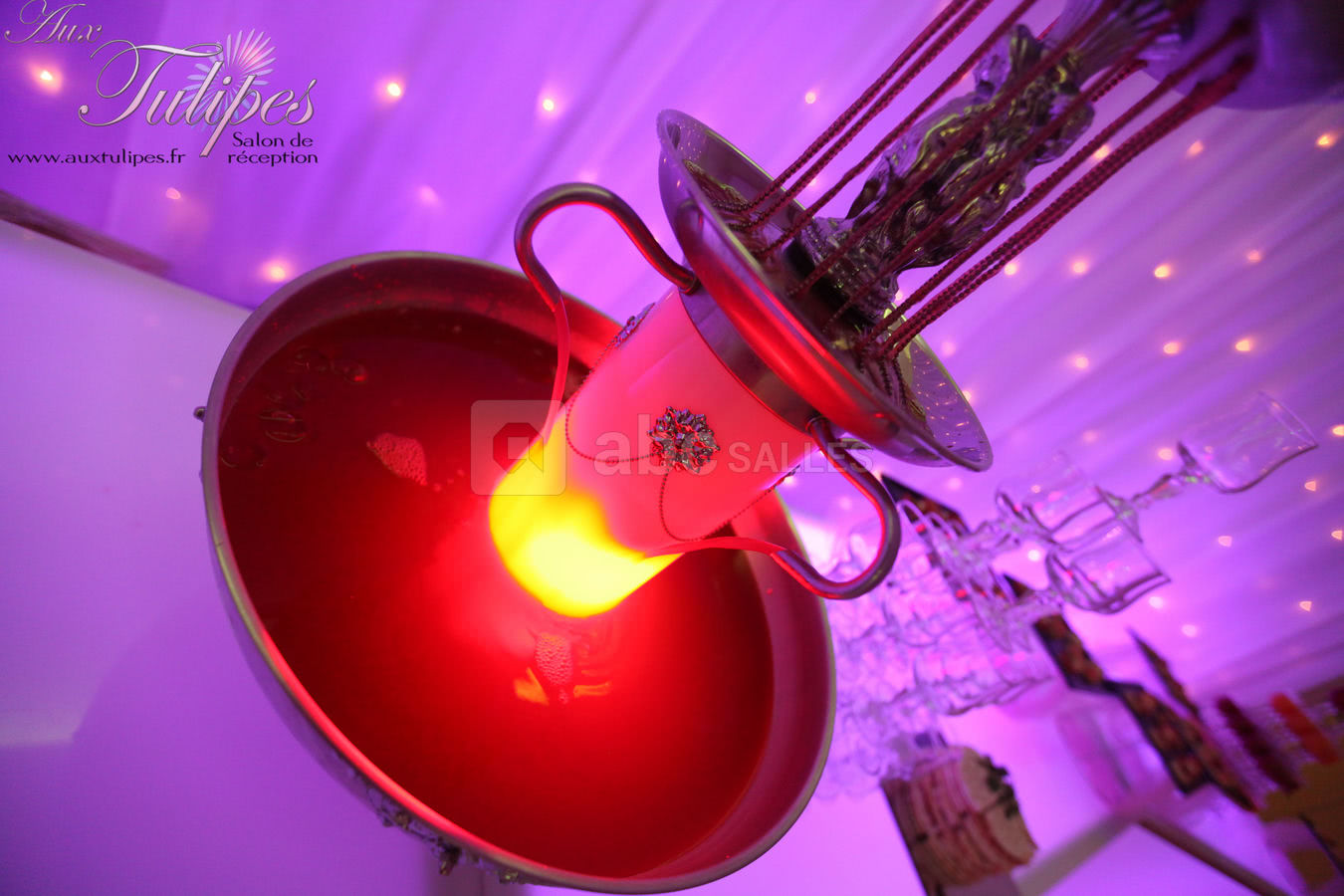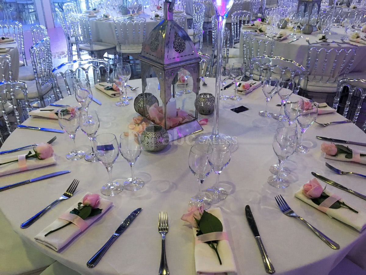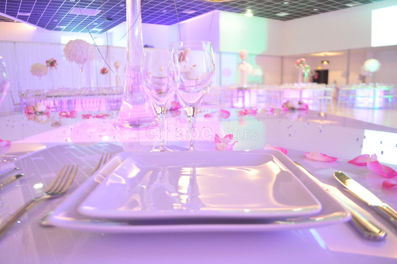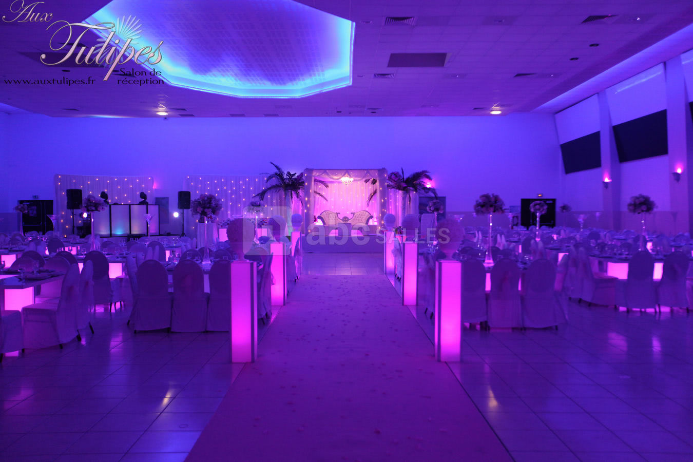 Décoration personnalisable : allée des mariés, mobilier classique ou moderne, centres de table, table d'honneur, décor des mariés, mobilier lumineux, compositions florales, coin photo...