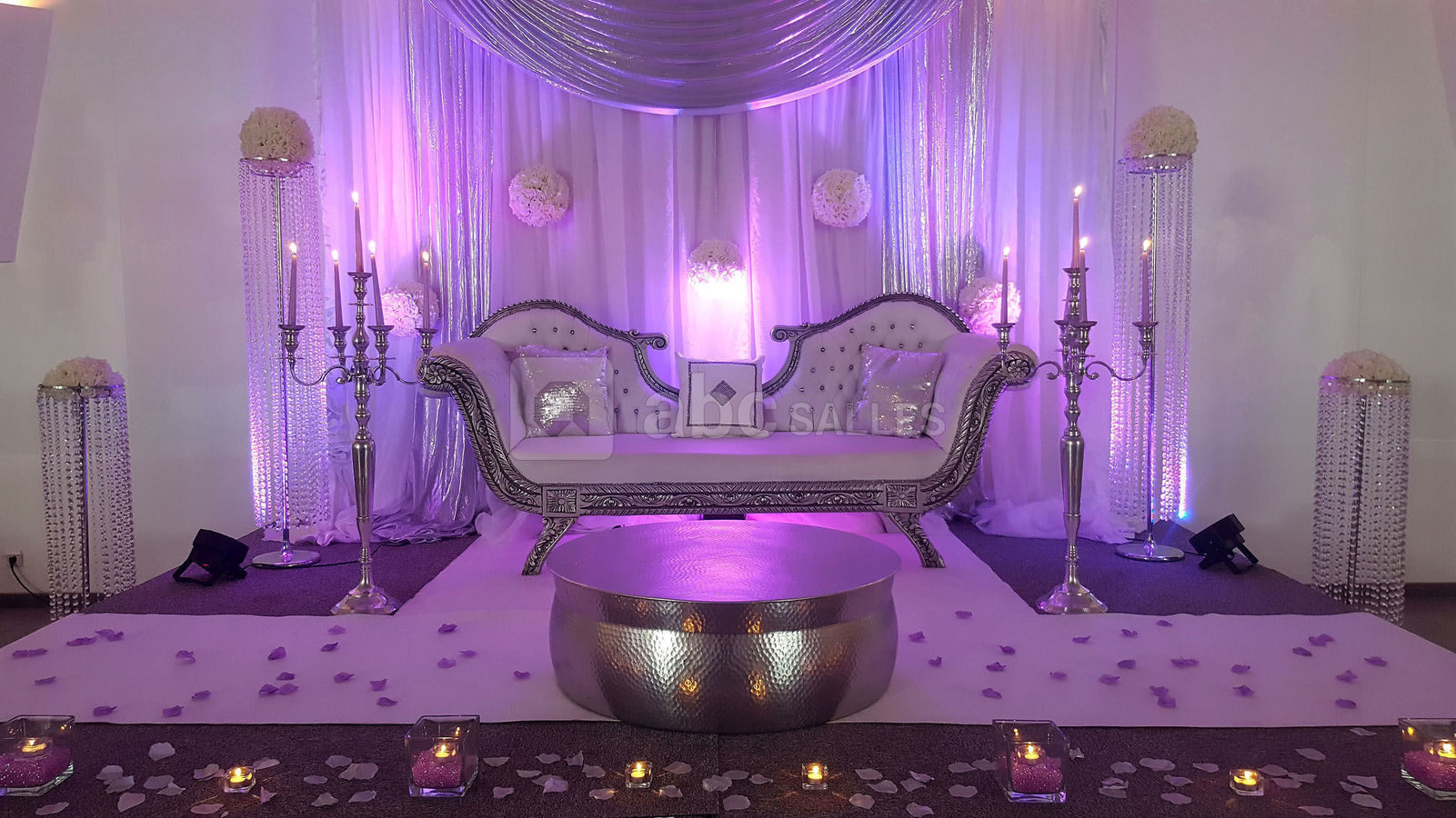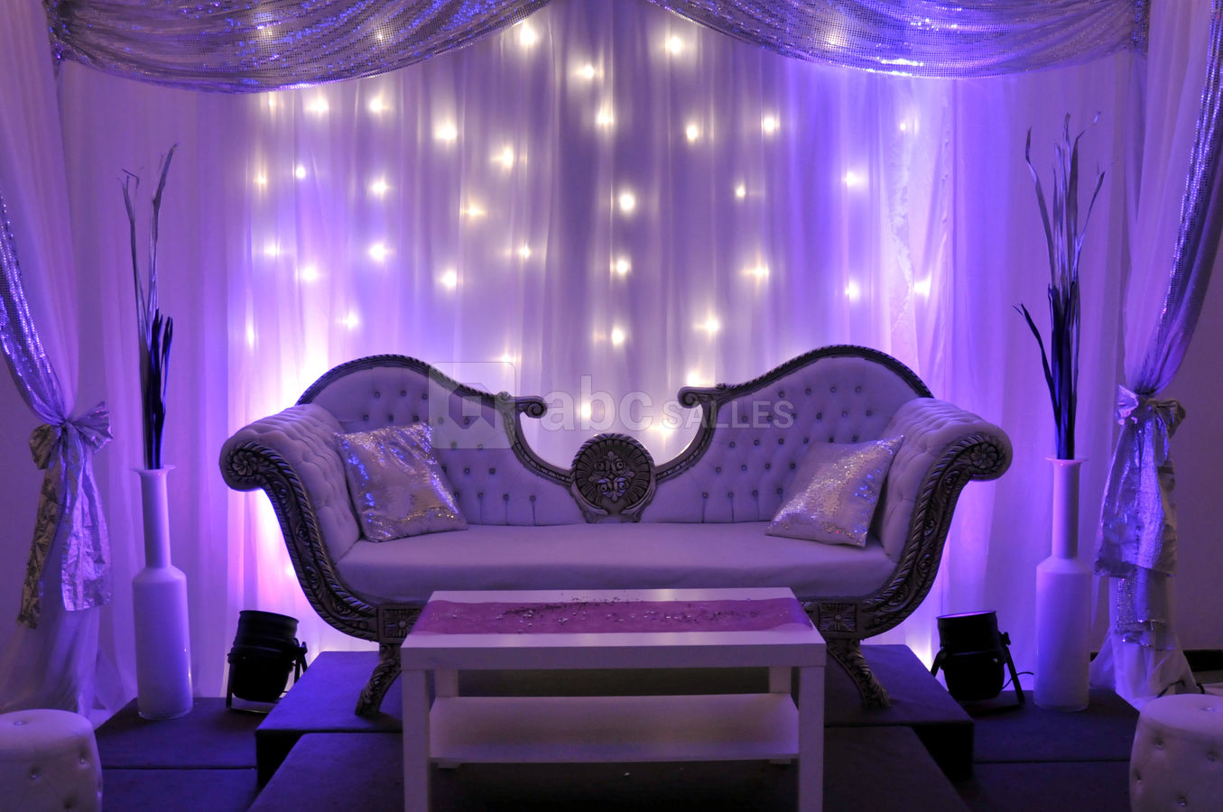 - Un trône entièrement dédié aux mariés et réalisé sur-mesure selon vos goûts et le thème de votre soirée.