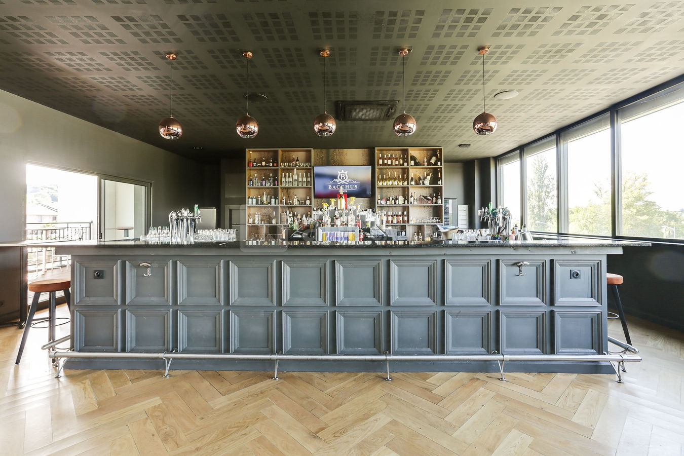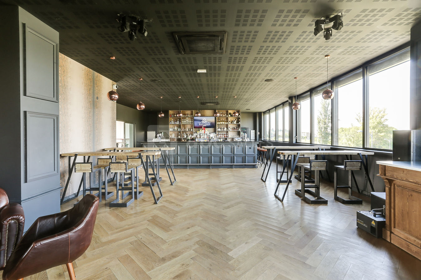 Au 1er étage, un Pub Lounge, permettra d’organiser vos réceptions dans une ambiance cosy et festive. La salle, équipée d'un rétroprojecteur, d’un système son, d’un grand bar, d’une terrasse indépendante …peut accueillir toutes vos réceptions, noces, séminaires …