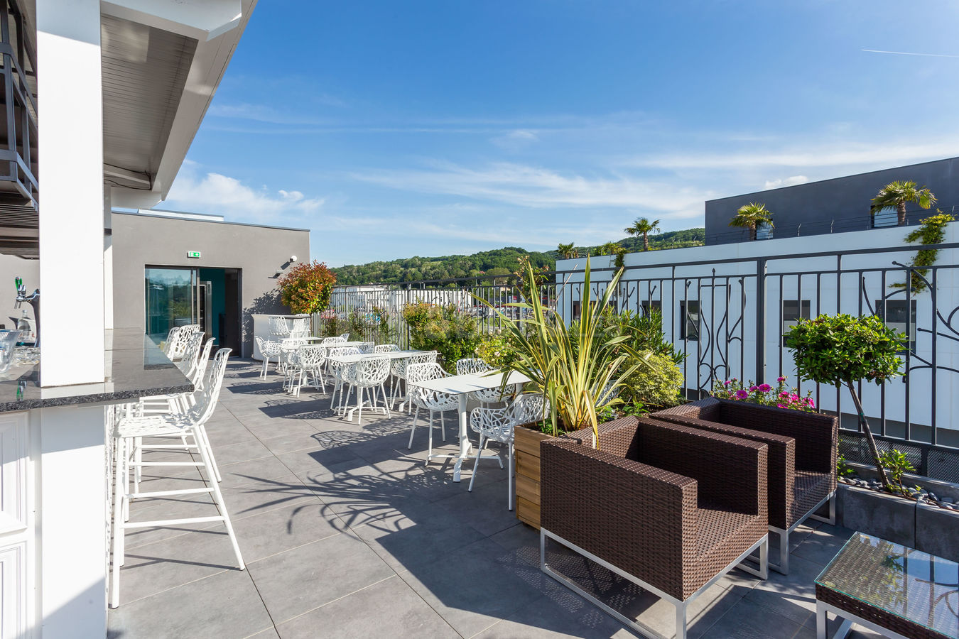 Puis au dernier étage, sur le rooftop, pourquoi ne pas profiter des belles journées d'été sur la spacieuse terrasse : Les Jardins de Bacchus ? Un toit terrasse unique pour célébrer tous vos événements en pleine ’îlot central offrira à vos événements l'occasion de jeter un oeil gourmand sur la préparation des plats depuis notre cuisine ouverte.