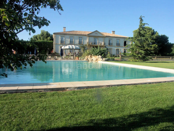L’apéritif peut se faire sur une terrasse semi - couverte devant la piscine, de 450 m².