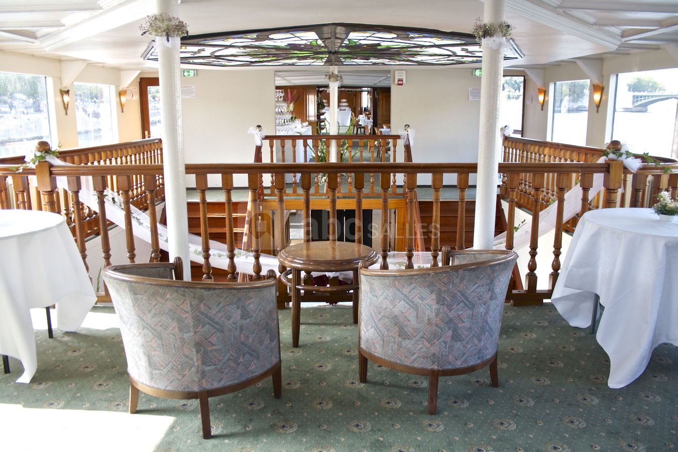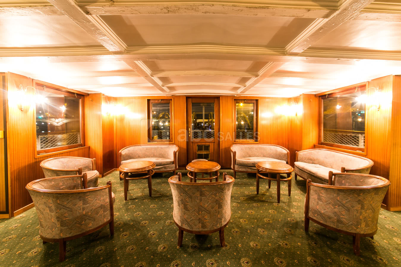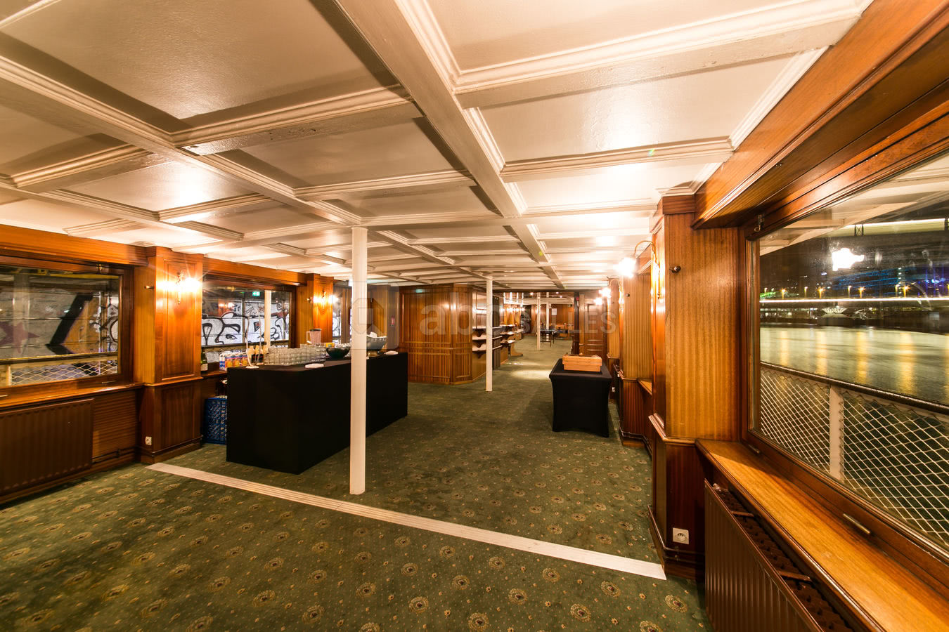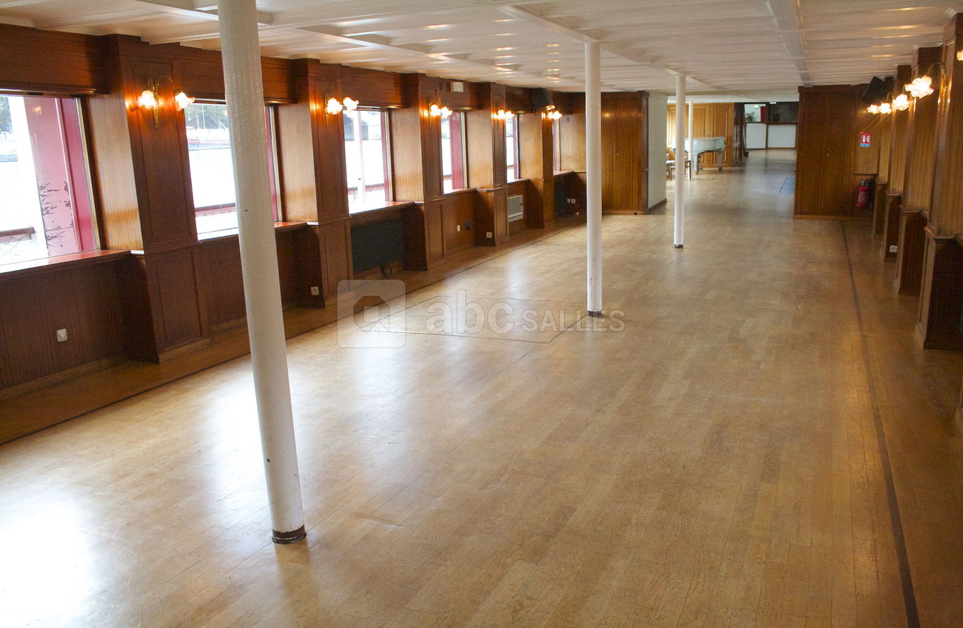Son pont supérieur moquetté vous invite pour vos réceptions privatives ou professionnelles et son pont principal tout en parquet avec grandes baies vitrées vous reçoit pour vos séminaires, vos présentations de produits, vos soirées dansantes....
