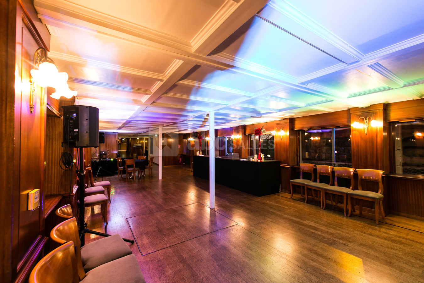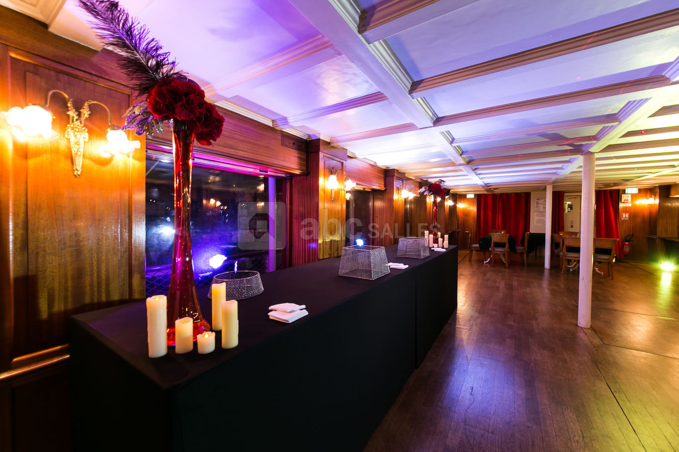 L'intérieur de ce bateau rappelle indéniablement le style des années 20 et ses espaces se prêtent parfaitement aux manifestations privées et professionnelles (anniversaire, mariage, pacs, baptême, soirée d'entreprise etc).