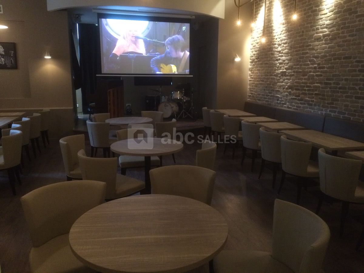 De par sa configuration, la salle se subdivise naturellement en deux espaces, l’espace bar et l’espace scène.