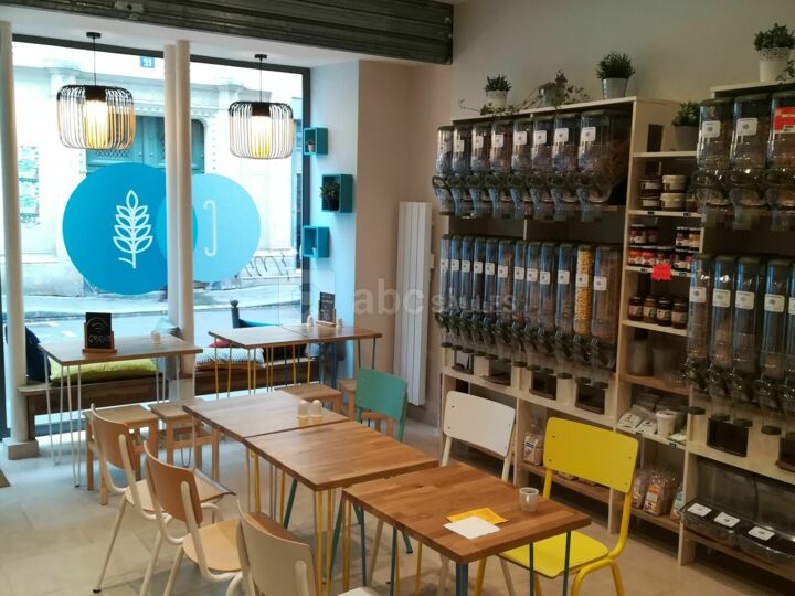Salle de 30 m² située au sous sol d' un coffee Shop spécialisé dans les céréales bio du petit déjeuner.