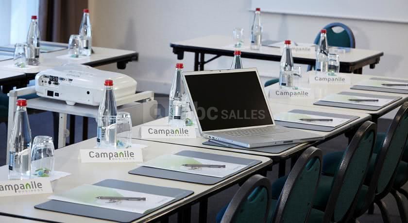 Nous vous proposons 2 salles de séminaires à la lumière du jour, modulables, entièrement rénovées et équipées d'écrans de projection, vidéoprojecteur et paper boards. Réunies, ces salles peuvent accueillir jusqu'à 60 personnes. Pour un séminaire bien réussie vos collaborateurs pourront bénéficier d'une pause permanente (café, thé, viennoiseries, macarons...).