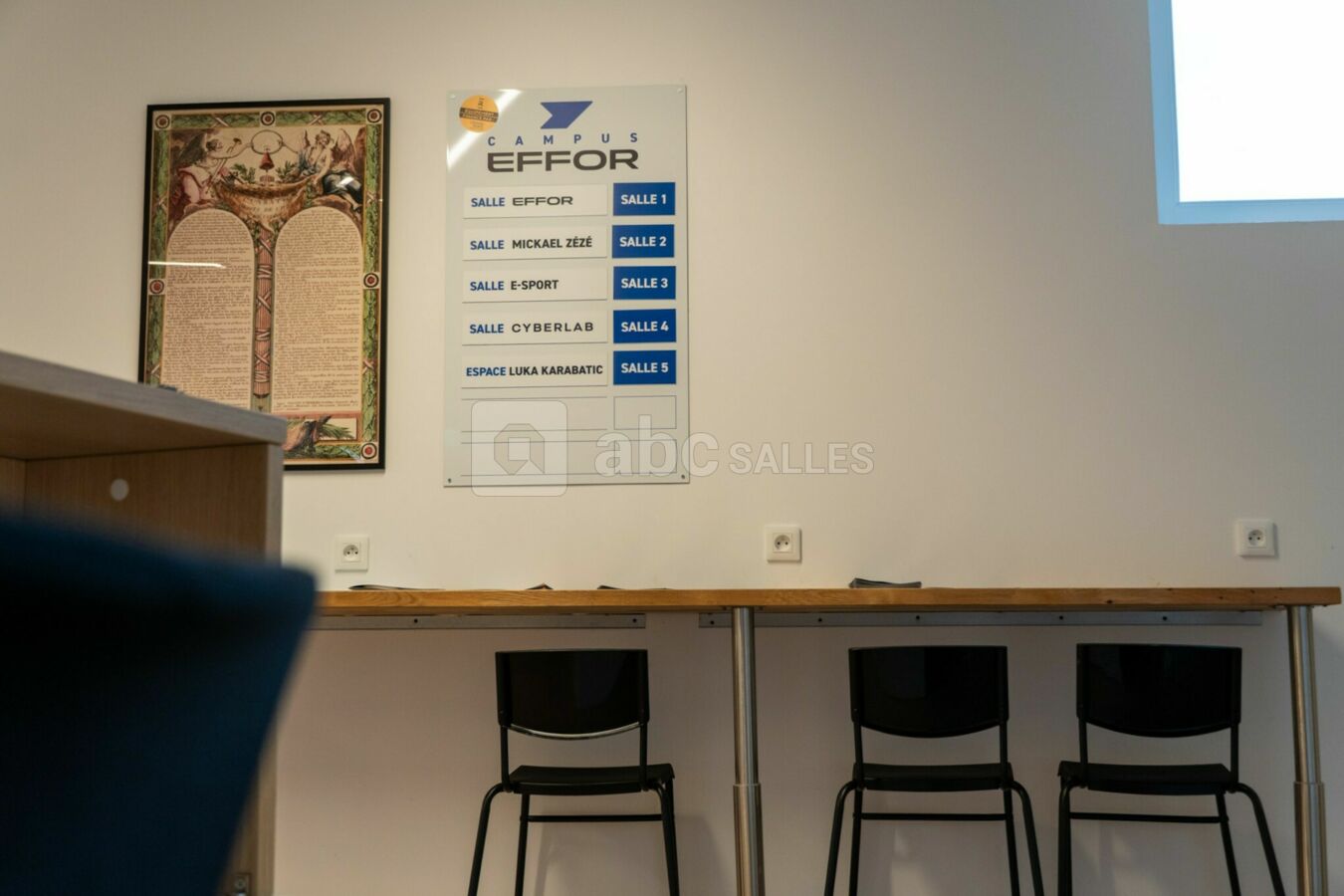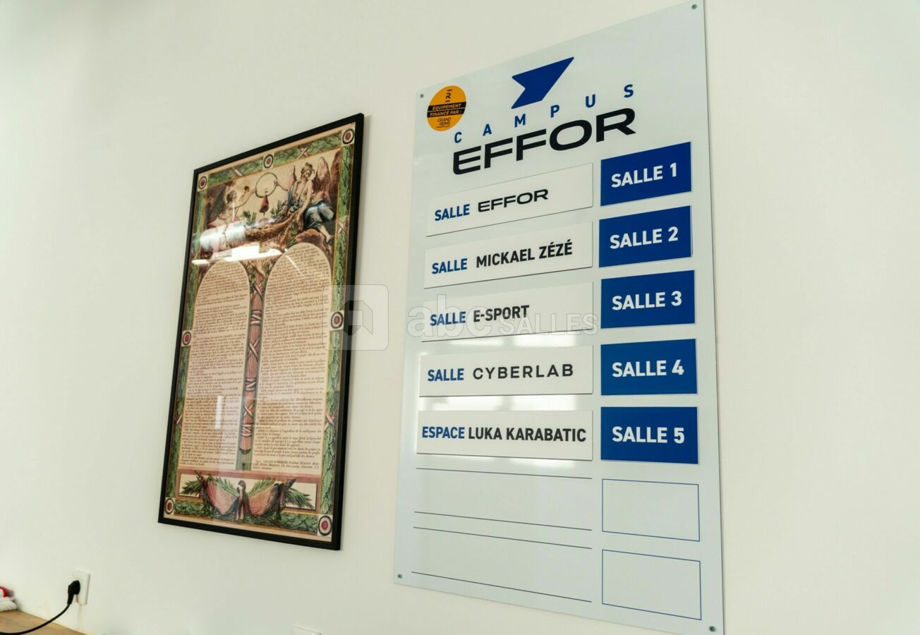 La privatisation du Campus EFFOR permet de bénéficier d’une infrastructure complète et modulable. Le site dispose de quatre salles de réunion, toutes équipées de vidéoprojecteurs ou d’écrans tactiles interactifs, idéales pour organiser des temps de travail efficaces et collaboratifs. Ces espaces sont entièrement climatisés pour garantir un confort optimal tout au long de votre événement.