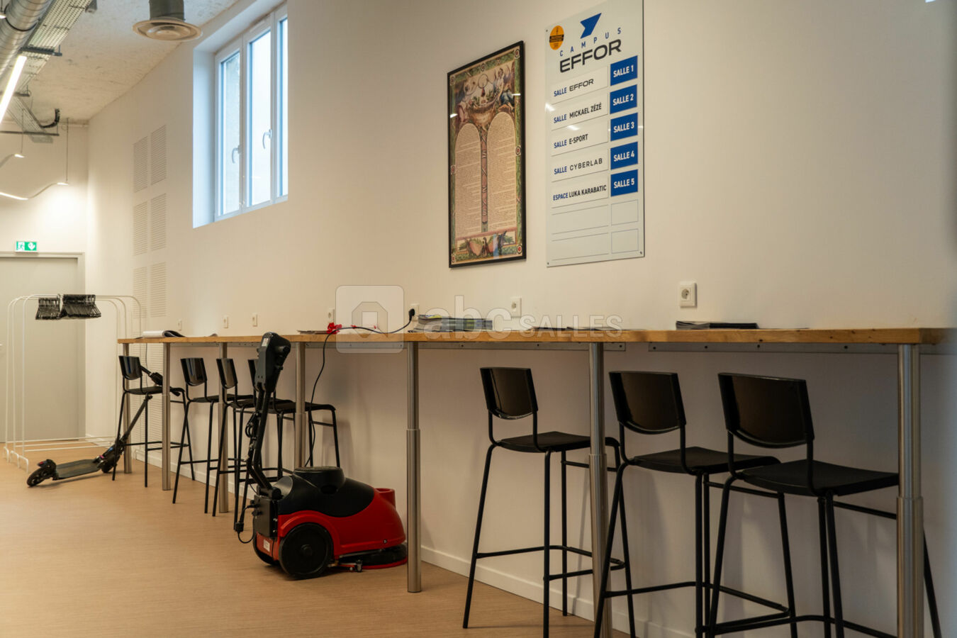 Pour vos temps de pause ou vos moments de convivialité, la privatisation comprend également l’accès à une grande salle de réception. Celle-ci est équipée d’un podium, d’un bar complet, et de tous les équipements nécessaires à une restauration événementielle fluide : lave-vaisselle professionnel, machine à glaçons, chambre froide, étuve chauffante et mini-bar. De quoi transformer votre événement professionnel en une véritable expérience immersive.