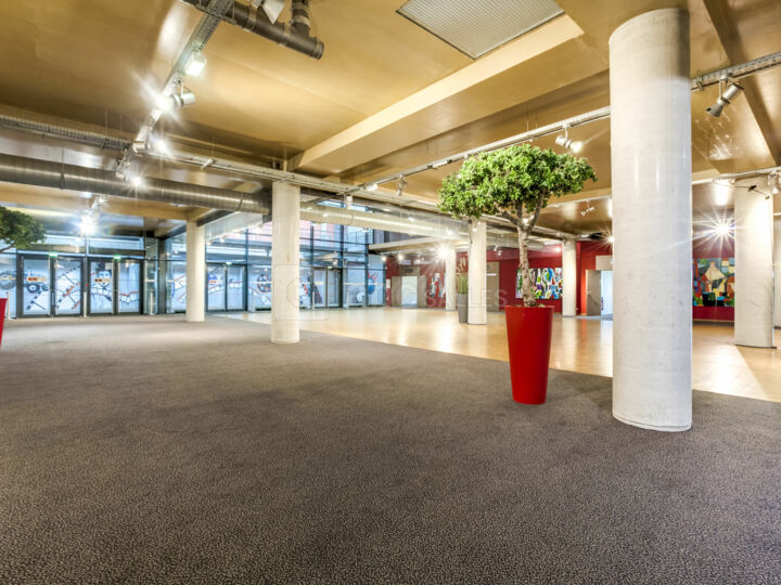 - Un Hall d'Accueil, espace de 550 m² pouvant accueillir jusqu'à 500 personnes en format cocktail (salon, exposition, restauration).