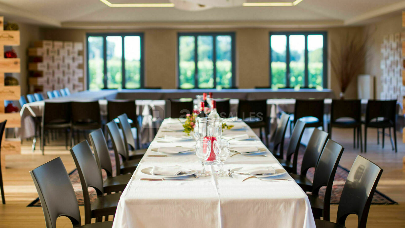 Dans une salle prestigieuse de 110 m² ouverte sur la vigne et entièrement équipée, offrez à vos collaborateurs un cadre calme et propice à des conditions de travail optimales.