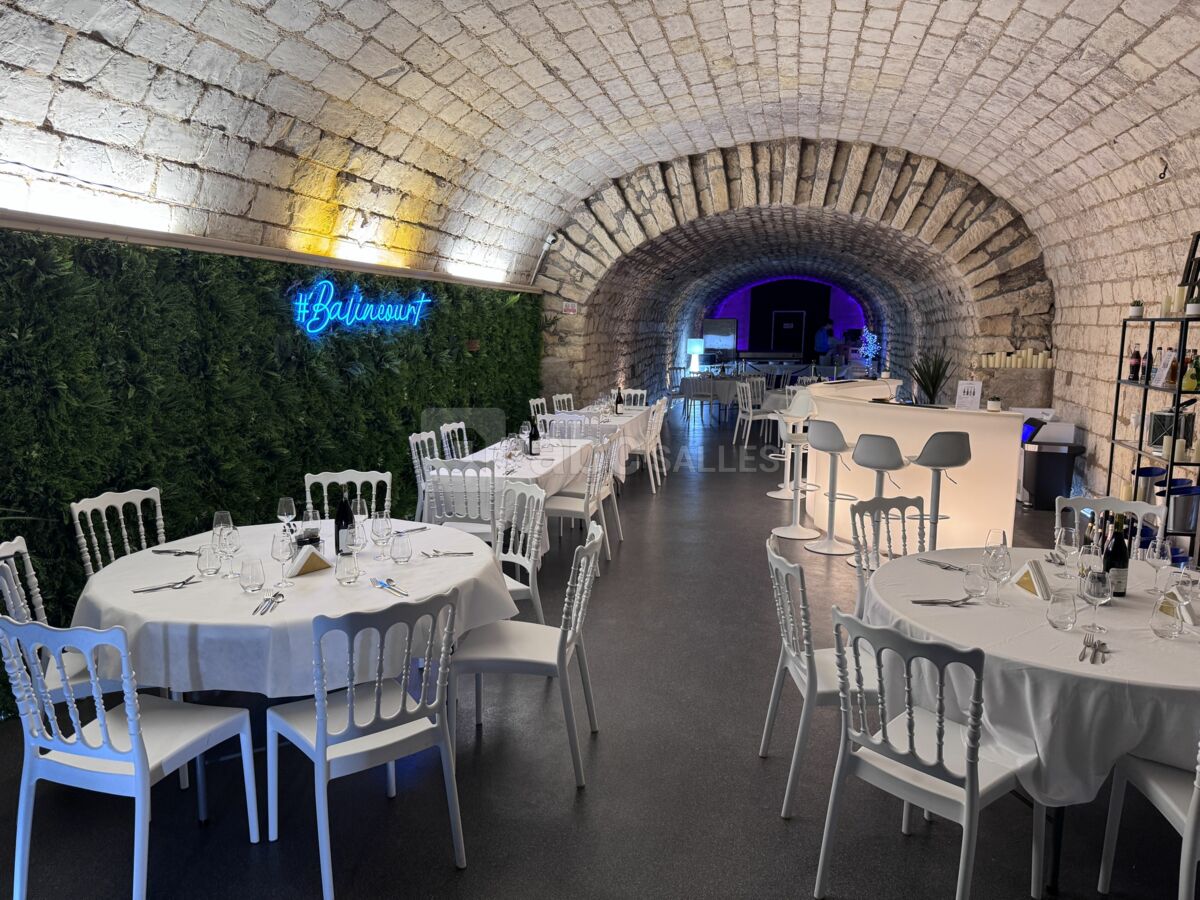 Un des accès souterrains à nos crayères à été aménagé pour vous recevoir dans un espace unique et totalement atypique. Se développant sur une surface de 150 m², cette salle d'un seul tenant dispose d'un équipement de climatisation Inverter pour réguler la température selon vos souhaits. Un second espace "Cuverie Balincourt" est également disponible pour la location avec 120 m² de surface incluant un espace "Café Barrista". Notre Lobby de 30 m² fait partie intégrante de nos locations et est complété par des Toilettes PMR.