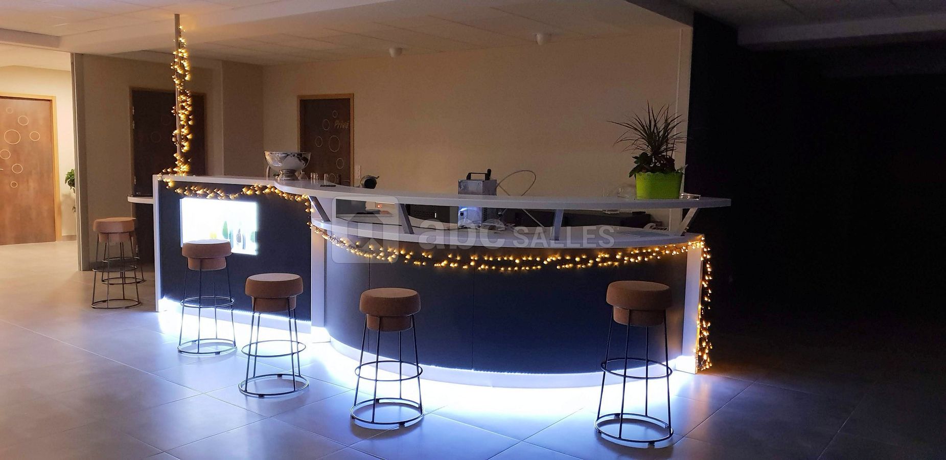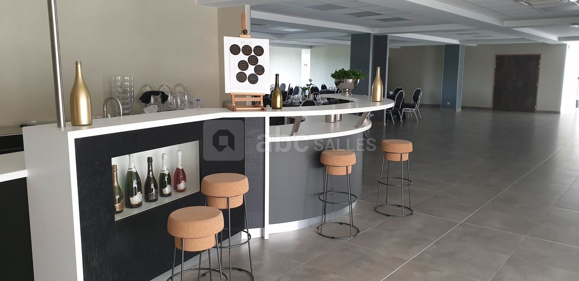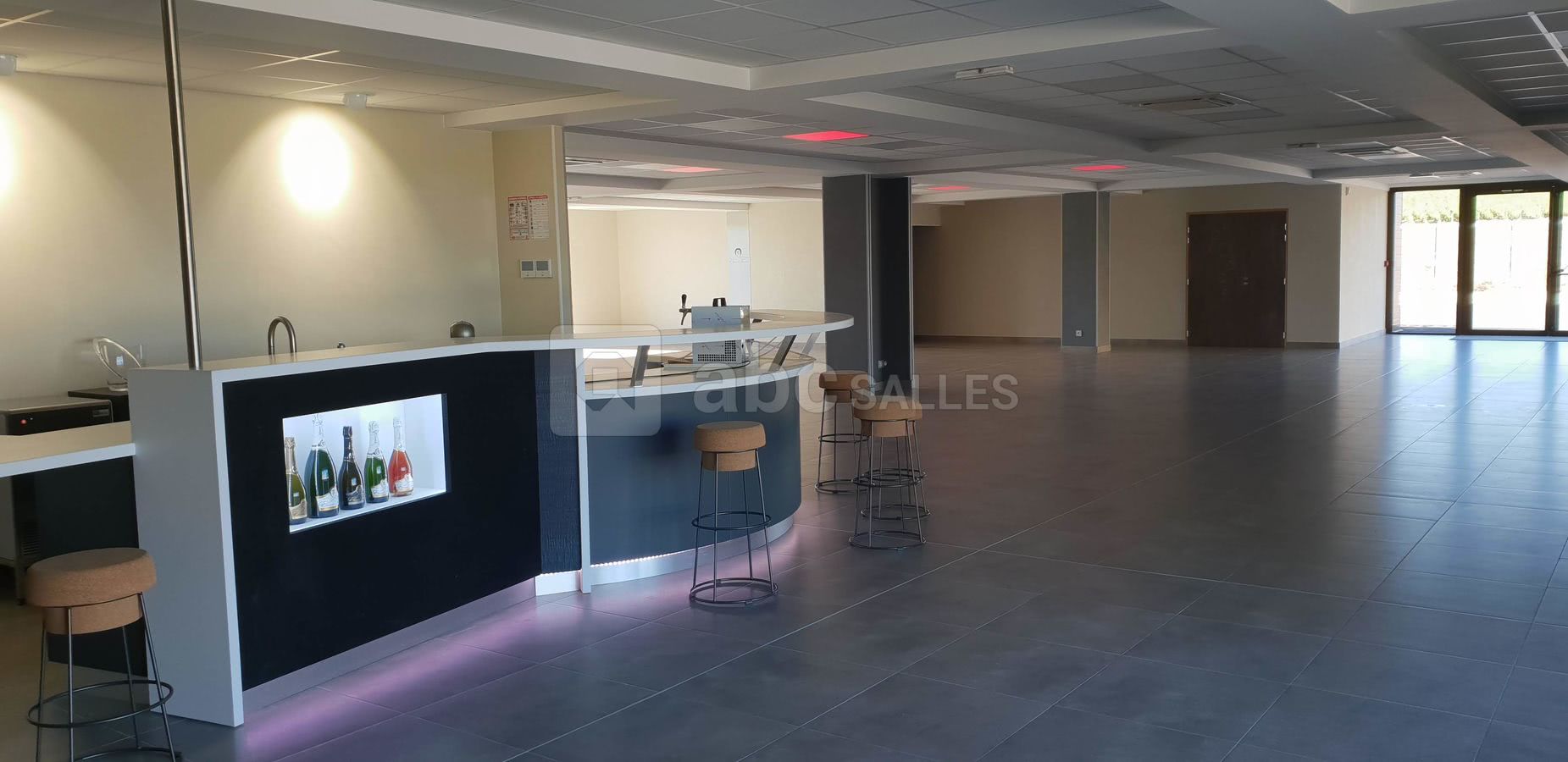 Mise à disposition de notre salle de réception de 250 m² fonctionnelle, moderne et épurée. Avec bar spacieux, cuisine équipée, vestiaire et zone pour sonorisation ou orchestre. Ecran et vidéoprojecteur mis à disposition. Eclairage modulable de couleurs à leds vous permettant de choisir votre ambiance.