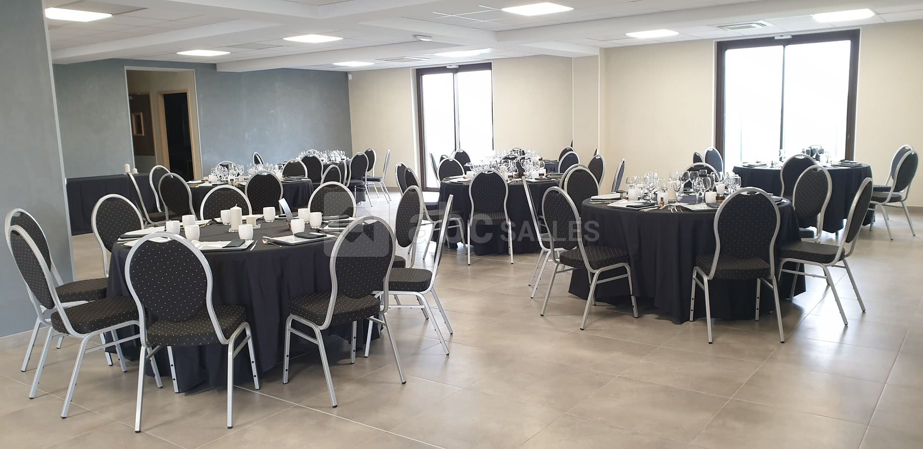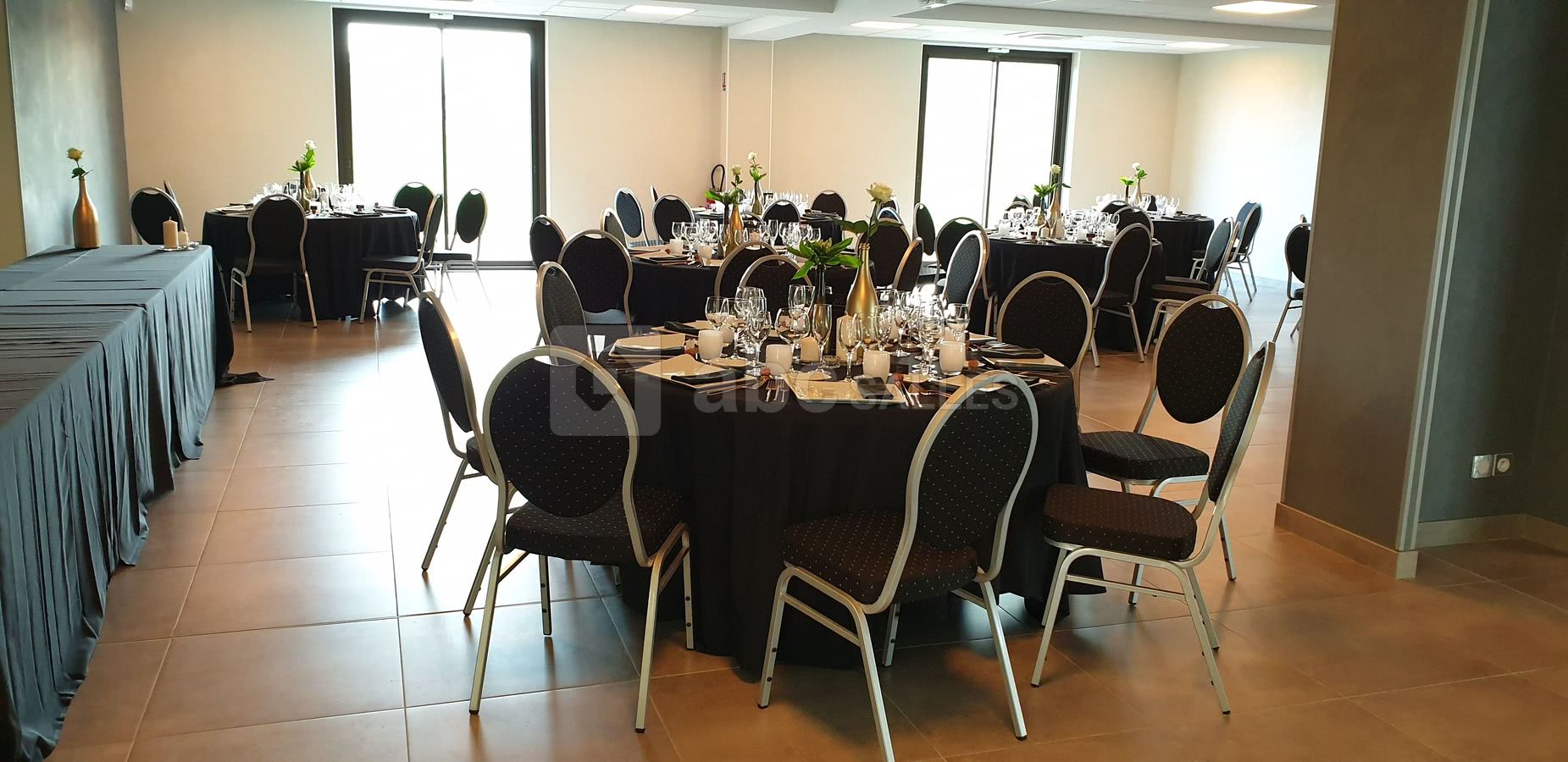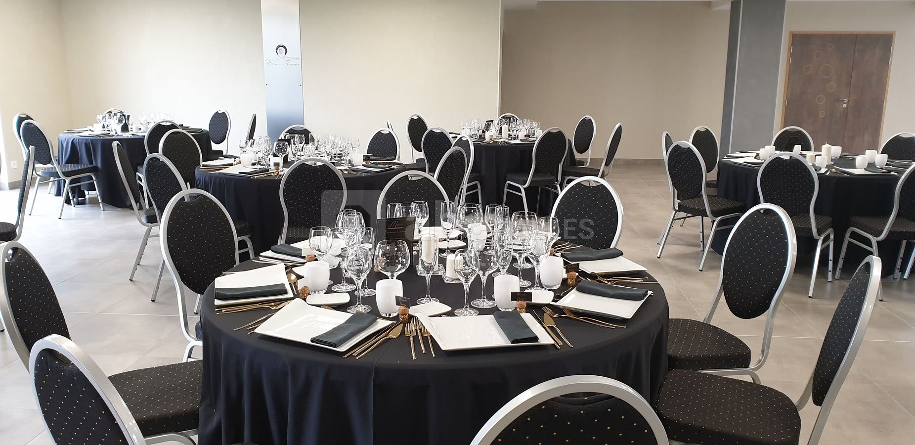 Mise en place des tables et chaises (rondes et rectangles), et nettoyage inclus dans la formule.