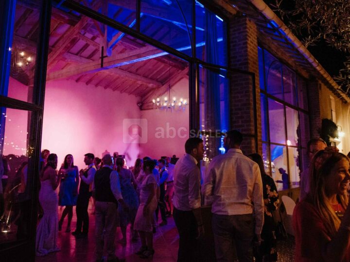 - L'Orangerie : Une salle de réception, avec un toit traditionnel en poutres tendues de guirlandes et de grandes portes vitrées donnant sur une cour. Idéal pour dîner et danser, sans couvre-feu!
