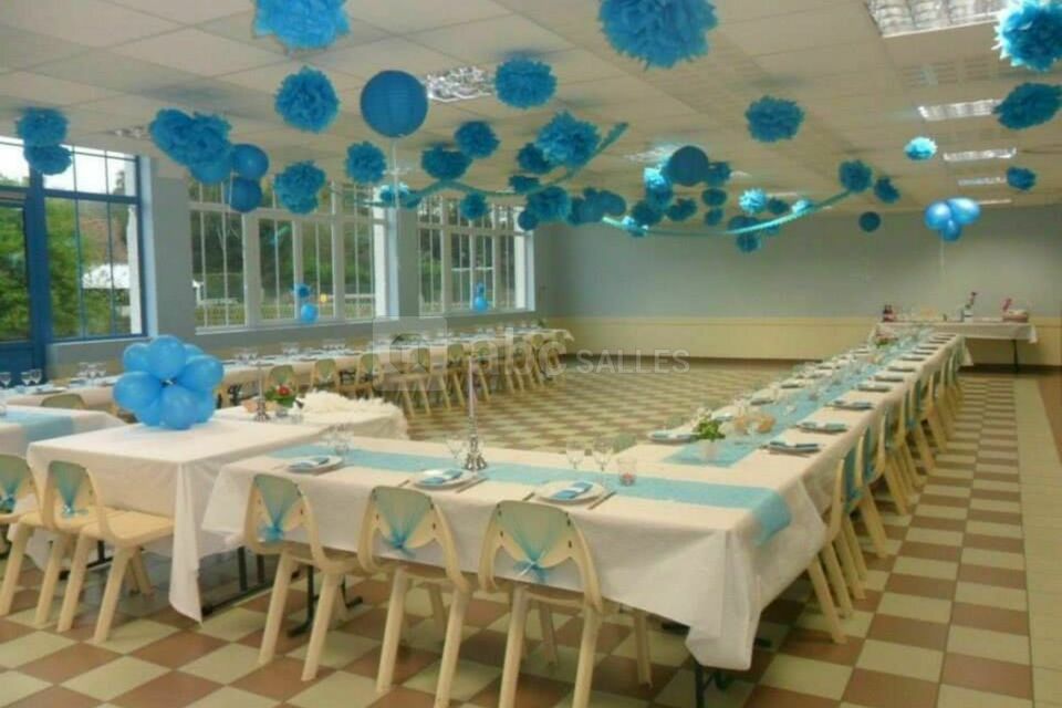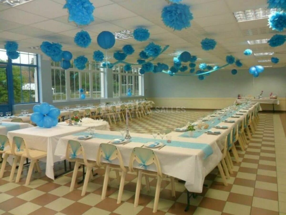 Idéale pour recevoir et organiser vos fêtes ou cérémonies, cette salle lumineuse a une surface de 170 m² (120 personnes assises maximum). Elle dispose d’un hall d’entrée et d’une salle annexe.