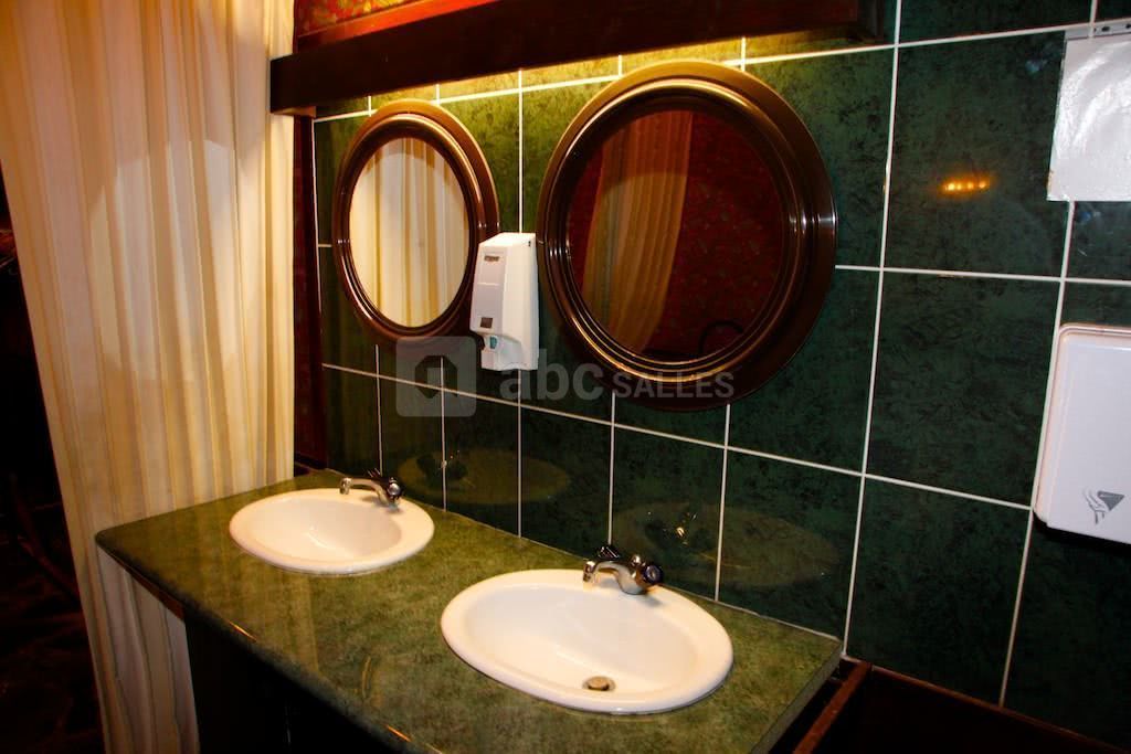 Deux grandes salles largement communicantes, murs en moellons, sol en marbre.