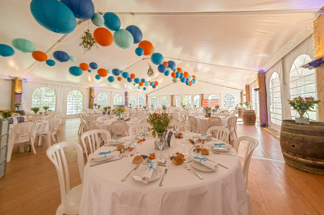 15 tables rondes et 150 chaises sont disponibles afin d'accueillir vos convives lors de vos réceptions.
