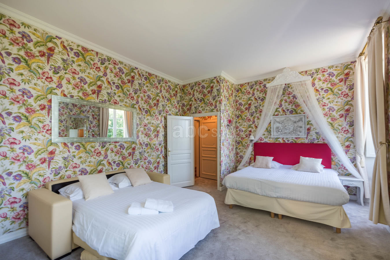 En Dordogne Périgord noir, à Montignac à seulement 800m des grottes de lascaux au bord de la rivière Vézère, dans un parc de 10 hectares aux arbres séculaires, cette noble demeure du XIX ème siècle remaniée par Napoléon III surplombe la rivière avec un charme et une insolente élégance.