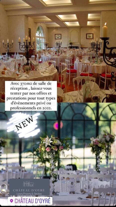 Bienvenue au Château d'Oyré ! Venez découvrir cette batisse du XVème et XVIIIème siècle qui sera le cadre idéal pour vos mariages, fêtes de famille ou réunions d'entreprise, séminaires ! Après une promenade dans le parc du château ou autour de la piscine, vous pourrez prendre un verre dans l'Orangerie et notre nouveauté, une grande verrière de 250 m², soit 370 m² de salle de réception, qui peuvent accueillir de 10 à 400 personnes.