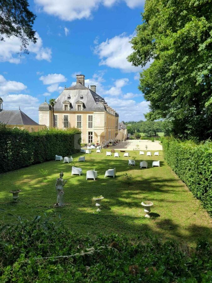 À l’extérieur, le jardin à la française, magnifiquement entretenu, complète cette immersion. Véritable écrin de verdure, il offre de multiples théâtres de verdure, des terrasses élégantes, un labyrinthe, ainsi qu’un potager soigneusement structuré. Cet ensemble paysager sublime l’harmonie entre nature et architecture, dans la plus pure tradition des jardins classiques français.