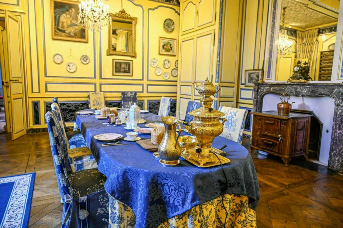 L’intérieur du château vous transporte dans un autre temps. On y découvre un escalier monumental en tuffeau, véritable prouesse architecturale, ainsi qu’une chambre en boiseries Louis XV, directement inspirée de celle de Madame de Pompadour, figure emblématique du raffinement à la française. Chaque pièce semble raconter une histoire, chaque détail est empreint de raffinement et de souci du beau.