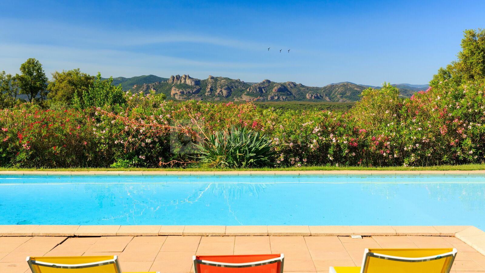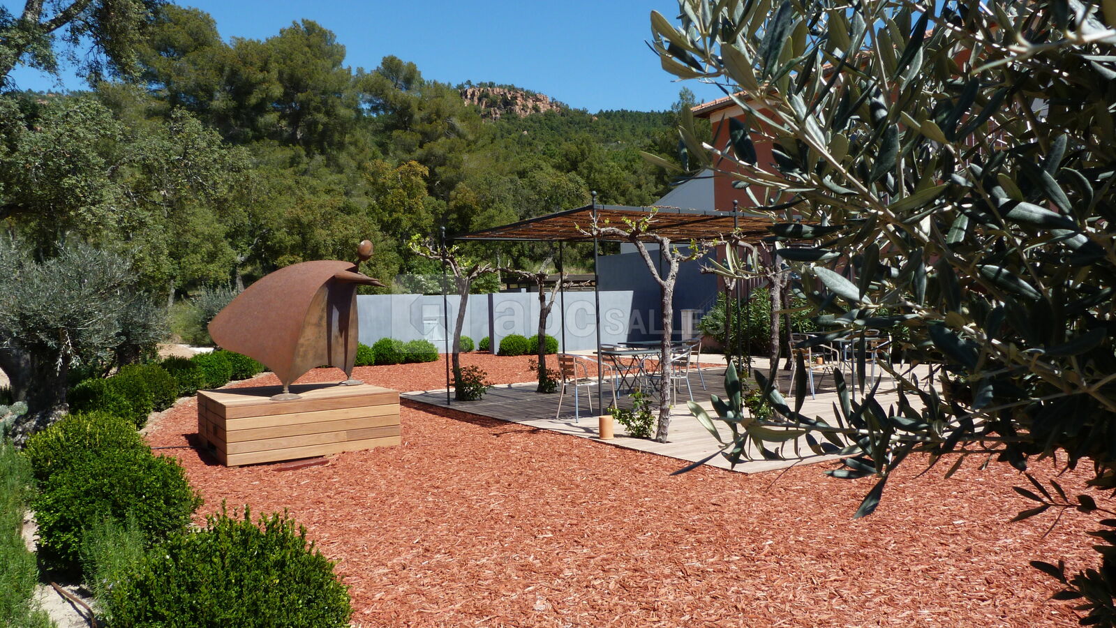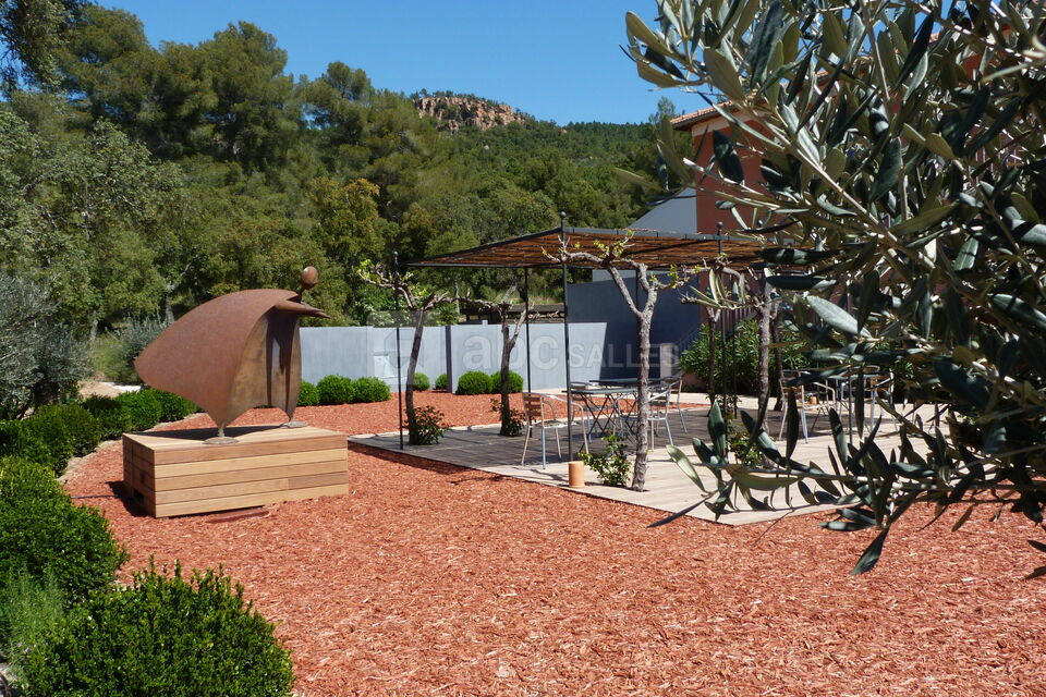Les deux espaces extérieurs, que sont le jardin et la terrasse, vous permettent d'organiser et de célébrer toutes sortes de festivités en plein air avec une vue imprenable sur la pinède provençale et les roches rouges majestueuses des falaises de l’Estérel.