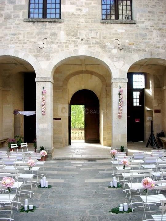 Salle des Trois Maréchaux : 2 espaces traiteurs (90 m²) ; cour d'honneur de 800 m² permettant de dresser vos cocktails