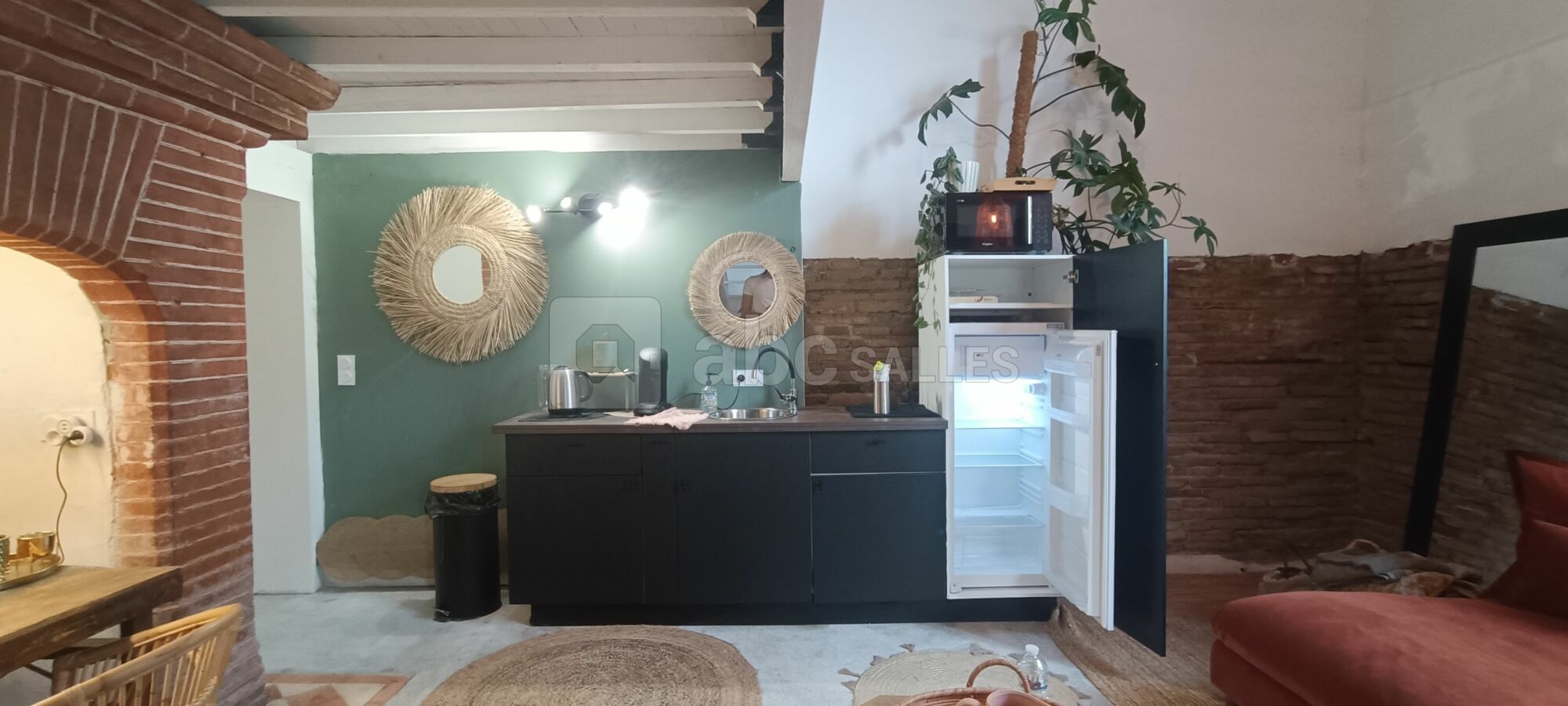 Couverte de sa charpente apparente et ses briques toulousaines, nous vous offrons une superficie de 160 m², mais également :
