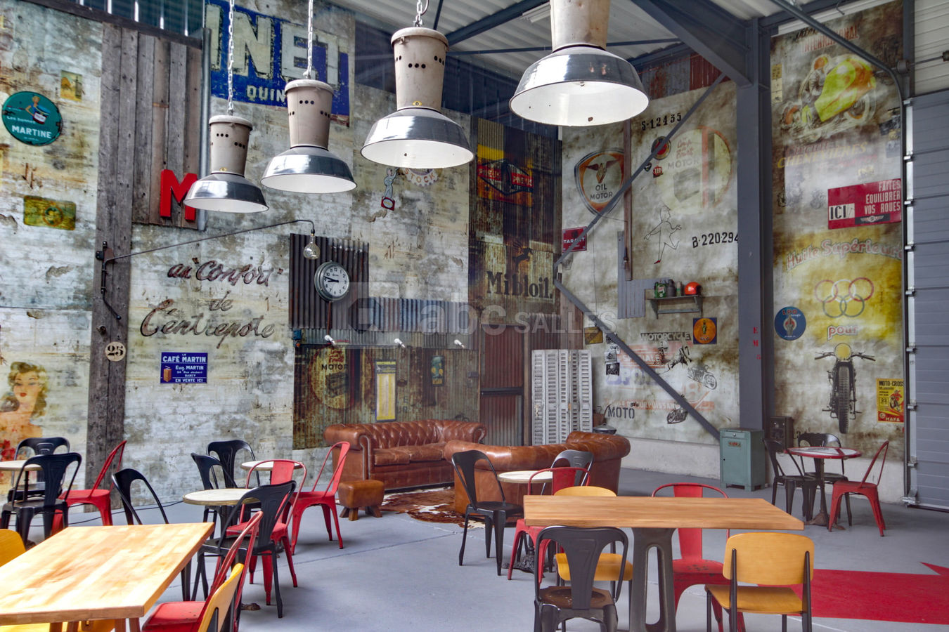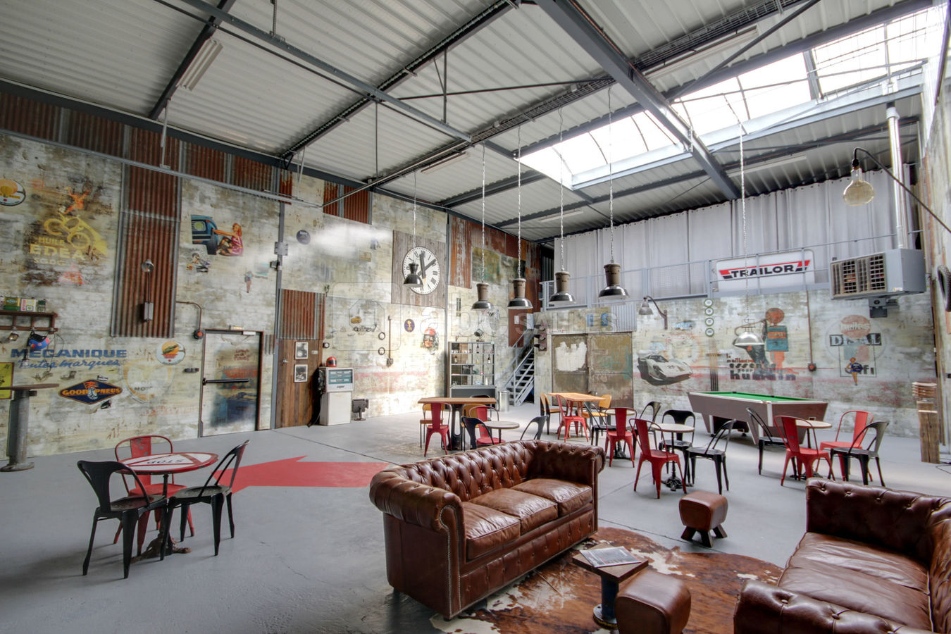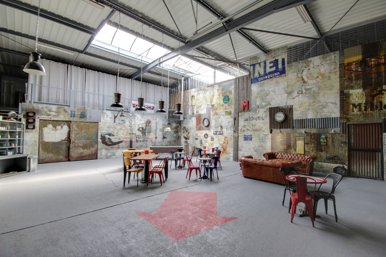 - "l'Entrepote" (120 m²) est une salle réceptive à la décoration vintage qui vous plongera dans un univers pour passionnés d’automobile idéalement dimensionné pour des groupes de 30 à 40 personnes.