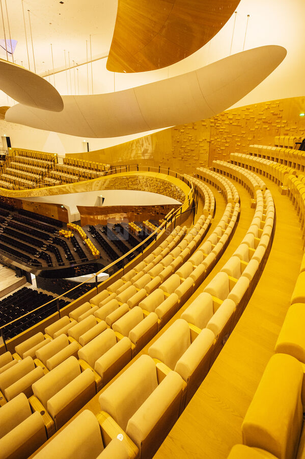 La grande salle Pierre Boulez, enveloppante et à l'acoustique exceptionnelle, offre des conditions de visibilité et de confort optimales. Les foyers qui l'entourent peuvent accueillir la totalité des invités. Cet espace peut également accueillir des défilés de mode, lancement de produits...