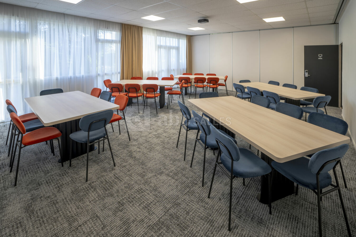 Salle de Séminaire Notre hôtel dispose de deux salles de séminaire modernes et modulables, idéales pour accueillir réunions professionnelles, formations ou événements d’entreprise. Équipée de matériel audiovisuel de pointe et bénéficiant d’un cadre confortable, elles permettent de concilier efficacité et convivialité pour tous vos événements professionnels.