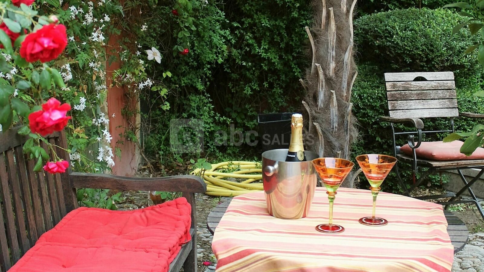 La cour d’honneur paysagée, avec ses rosiers et plantes méditerranéennes aromatiques, est ouverte à partir d’avril jusqu’en octobre. Vous pourrez y apprécier un cocktail ou un cru de côtes du Rhône sur un air de jazz.