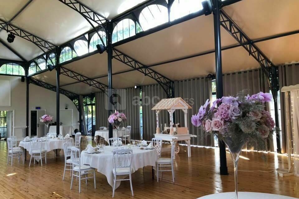 Au sein d'un parc de 7 hectares, vous découvrirez un lieu somptueux pour la célébration de votre grand jour. Le Domaine d'Aslan mettra à votre disposition son Orangerie de 500 m² où vous pourrez recevoir de jusqu'à 300 personnes. Cette espace vitré vous permettra de de profiter de la vue panoramique du Domaine et de la vallée.