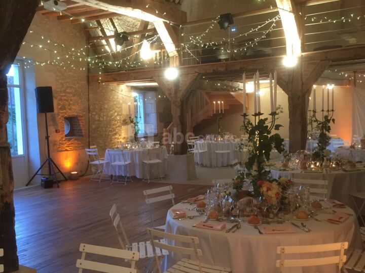 Chaises, tables de réception, vidéoprojecteur, grand écran, éclairages nocturnes et mobilier d'extérieur sont proposés pour une réception personnalisée, cocktail, vin d'honneur, dîner peuvent être organisés dans l'ensemble de la grange, le rez-de-chaussée et les 2 mezzanines, ainsi que sur les pelouses fleuries