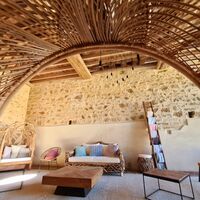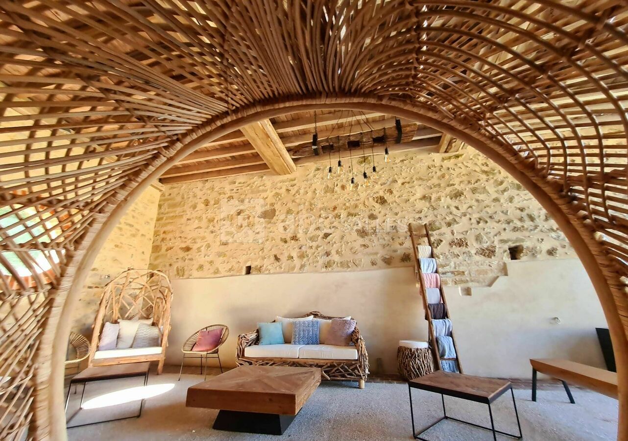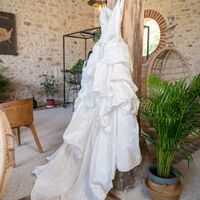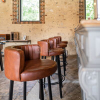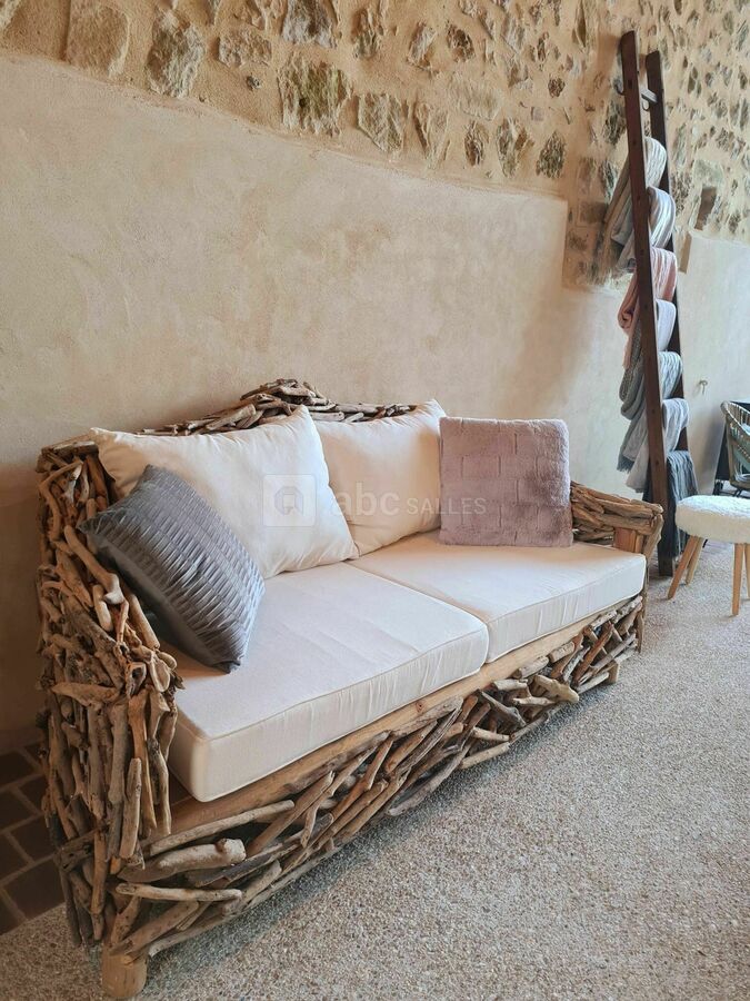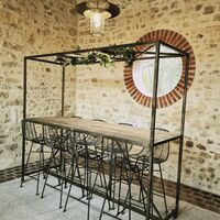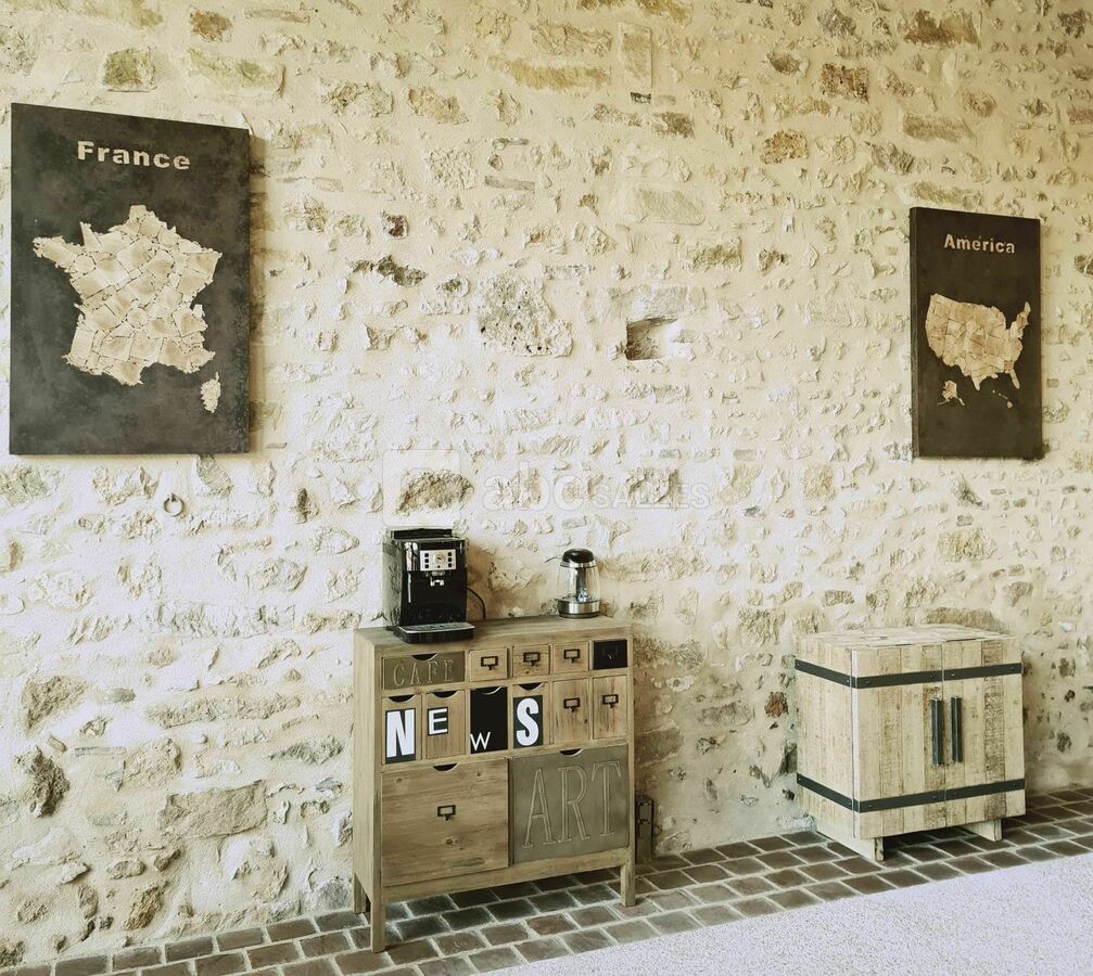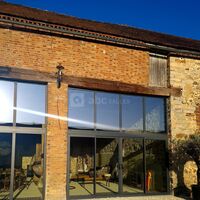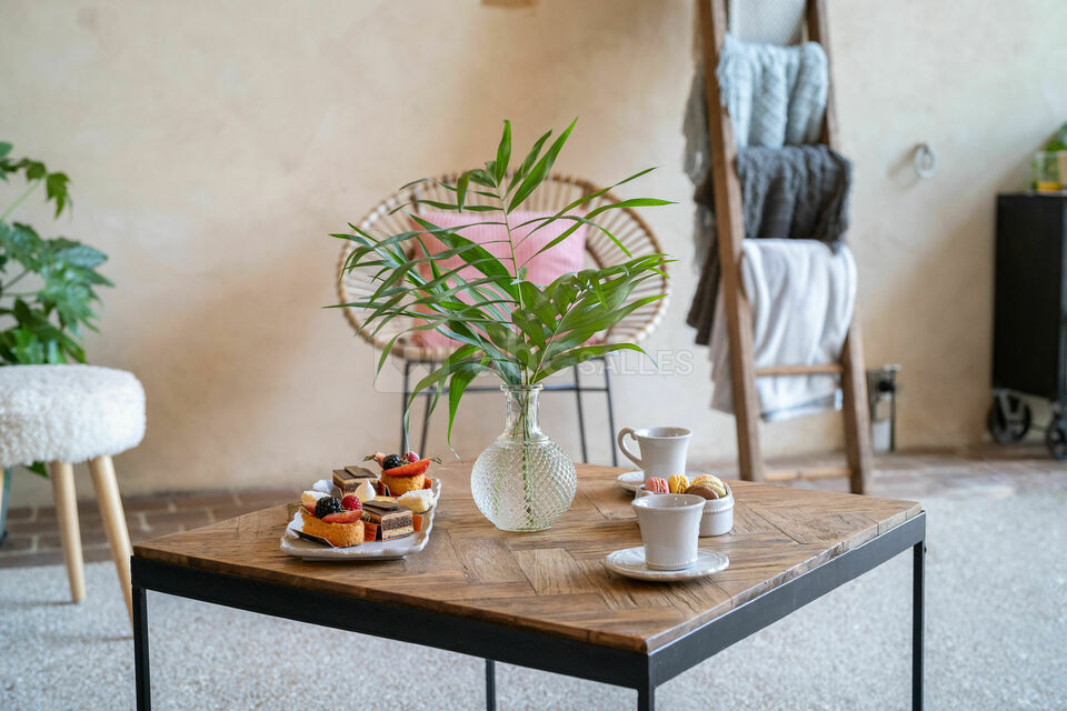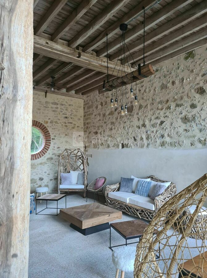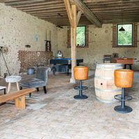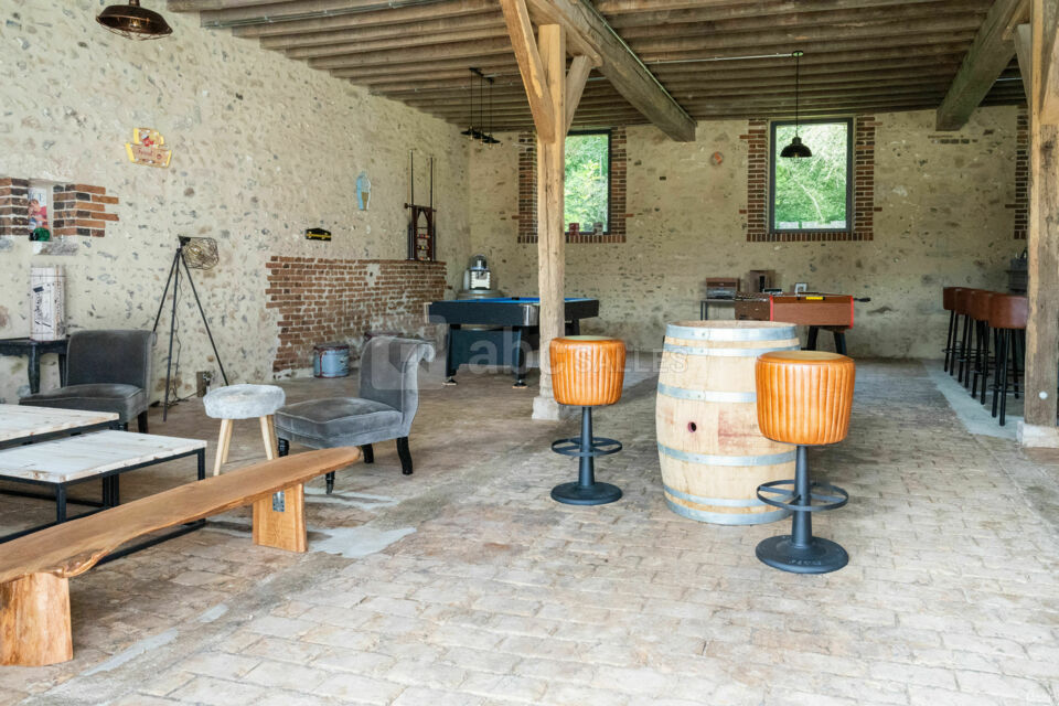 - La salle de réception : D’une superficie de 280 m², cette salle vous offre un très beau volume puisqu’elle est entièrement cathédrale. Murs en pierres, grandes ouvertures sur l’extérieur, plafond cathédrale avec vue sur la superbe charpente, elle allie l’ancien et le moderne. Le mobilier : tables et chaises est compris dans la location. Elle a une capacité de 180 personnes.