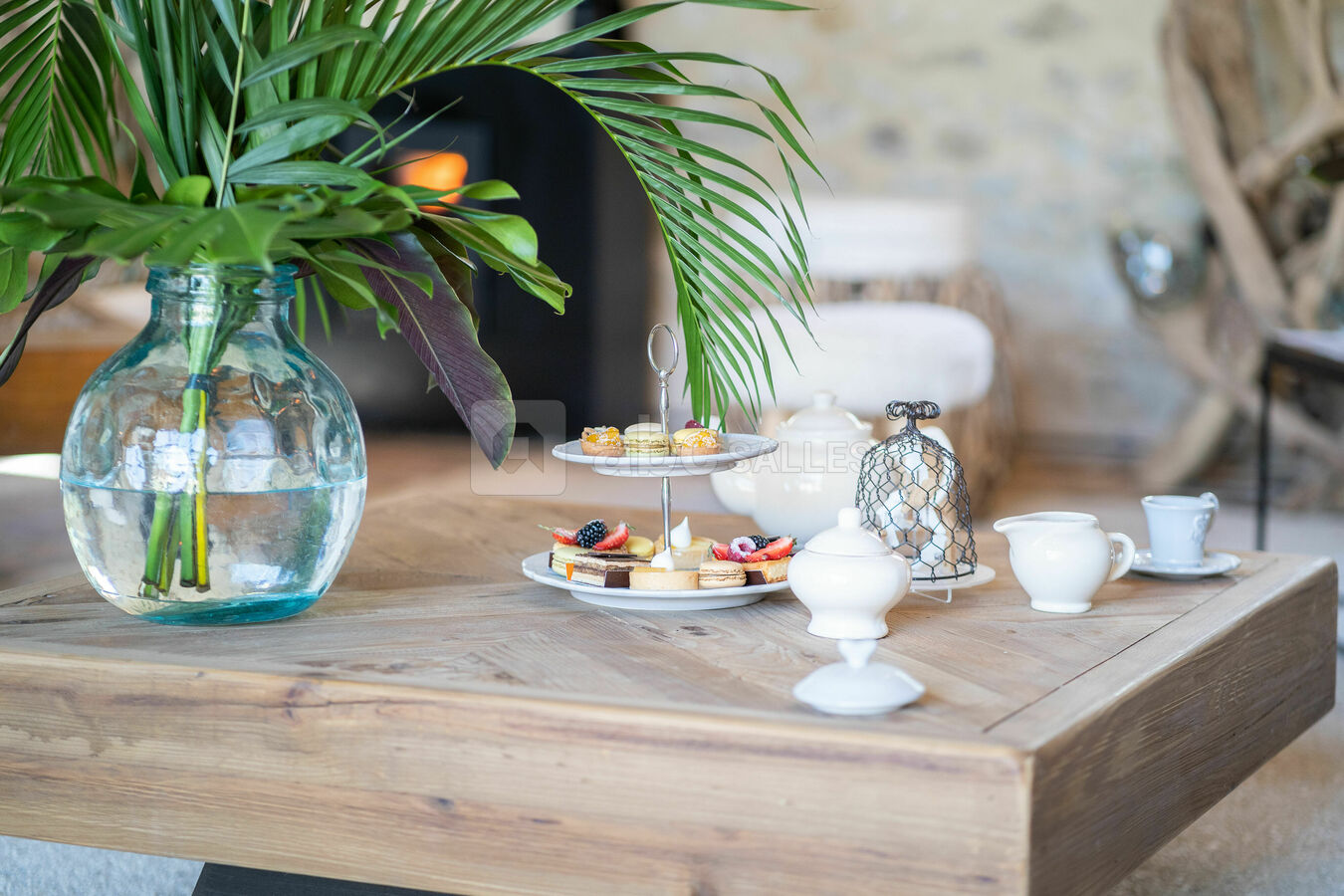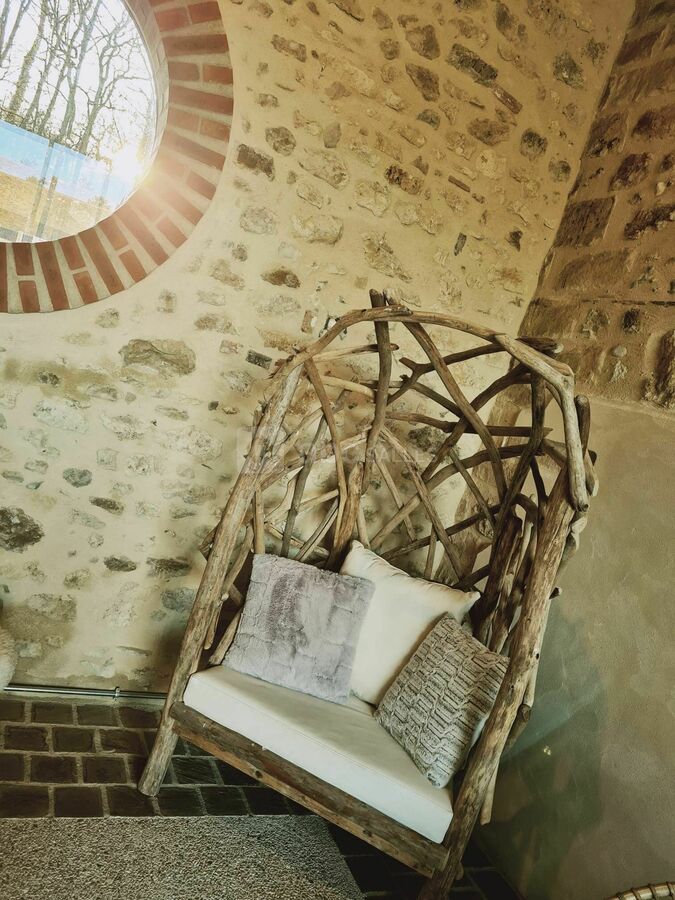 - Le jardin d’hiver : Pour vivre un moment de détente entre amis autour d’un thé, dans une ambiance cocooning et un style intemporel. Plusieurs coins détentes ont été créés dans un esprit nature. La vue sur la forêt par deux œils de bœuf de 140 cm de diamètre, la verrière donnant sur la cour intérieure et la végétation intérieure donnent l’impression d’être au milieu de la nature tout en profitant de tout le confort nécessaire.