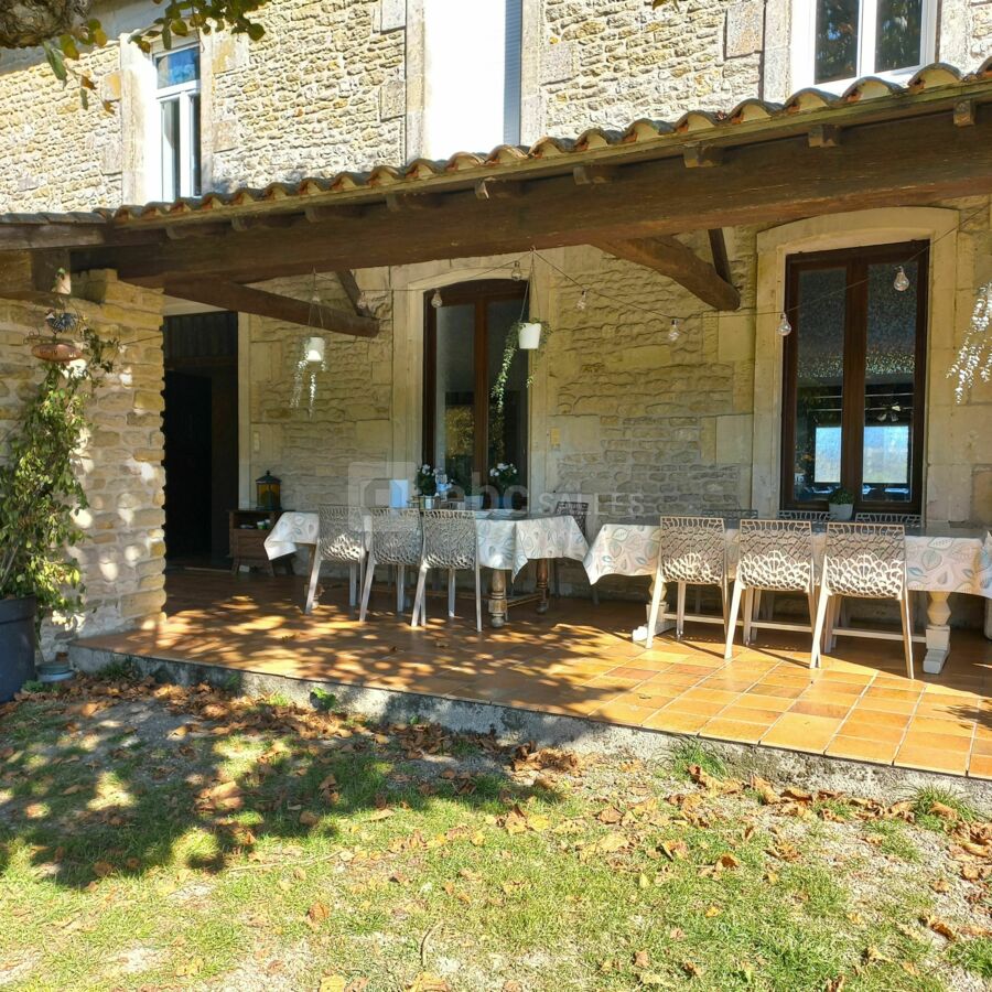 La salle en forme de U, de 130 m², se situe dans une ancienne longère et dispose également d'une terrasse couverte en extérieur pouvant accueillir une quarantaine de personnes assises. La capacité de logement est de 40 couchages répartis dans différents gîtes de capacité allant de 4 à 10 personnes.