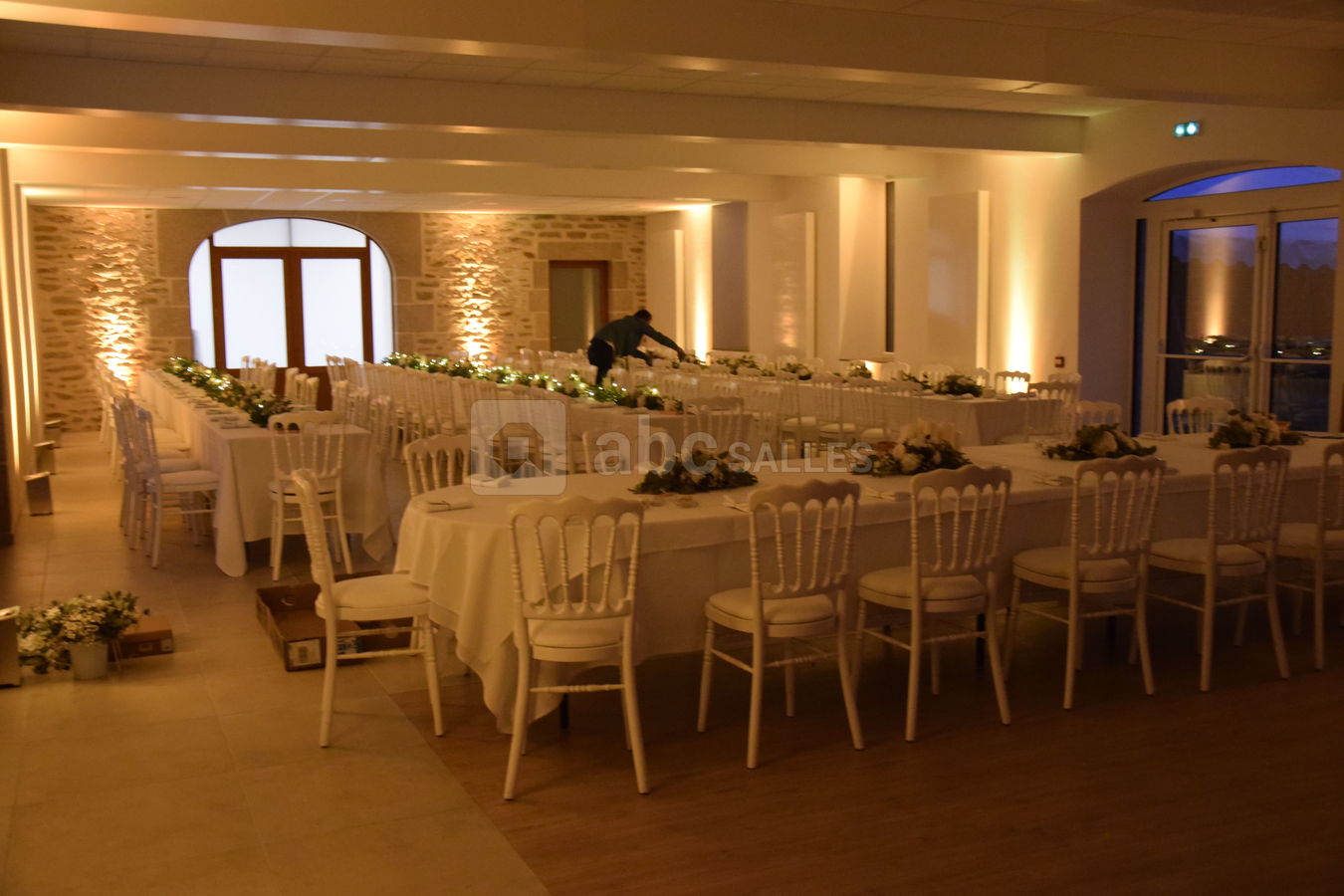 Et pour votre réception, une salle de 160 m² très lumineuse et adaptée aux personnes à mobilité réduite accueillera jusqu'à 160 de vos invités, ainsi qu'une petite salle adjacente pour les enfants de 40 m²