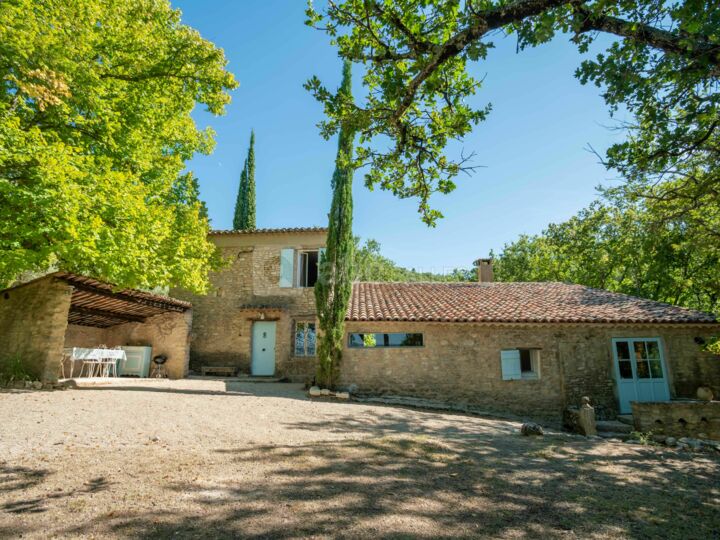 La bâtisse en pierre de taille typiquement provençale est entourée d’oliviers et de cyprès. Ses 4 hectares de terrains boisés, aménagés en longues terrasses vous plongent dans une atmosphère ressourçante et paisible.