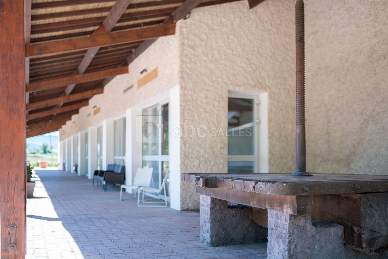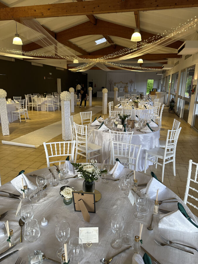 Le Domaine de la Source est composé d’une grande salle de 300 m² de plain pied, d’une terrasse ombragée de 120 m², d’un parc de 3500 m² arboré et fleuri, ainsi que d’un parking de 200 places.
