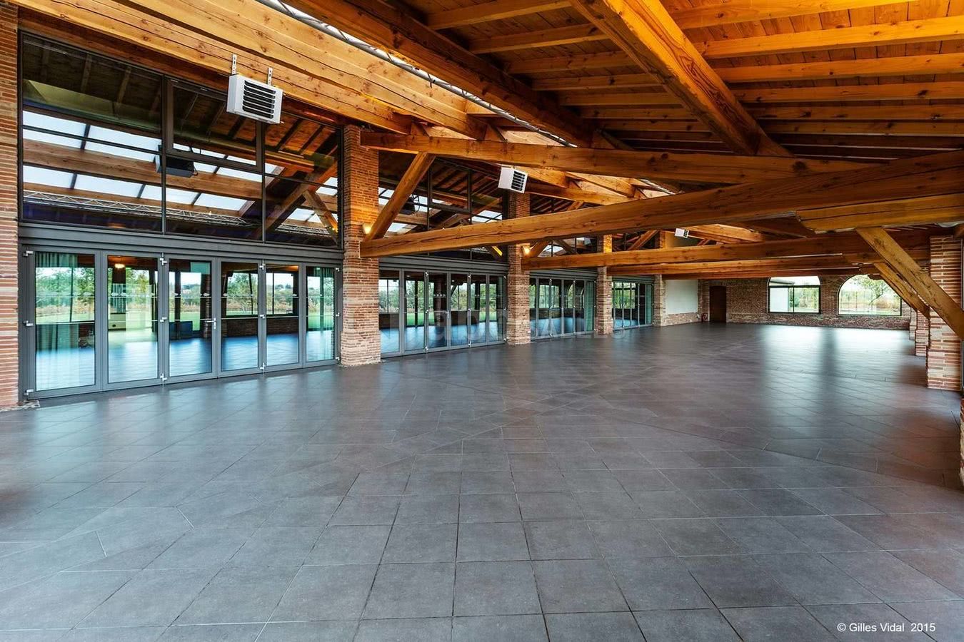 Arrivée majestueuse dans le parc, échange d'alliances sous l'allée de pins parasols, vin d'honneur dans un environnement bucolique et dîner dans une magnifique salle aux matériaux nobles de briques toulousaines et charpentes apparentes... Laissez aller votre imagination.